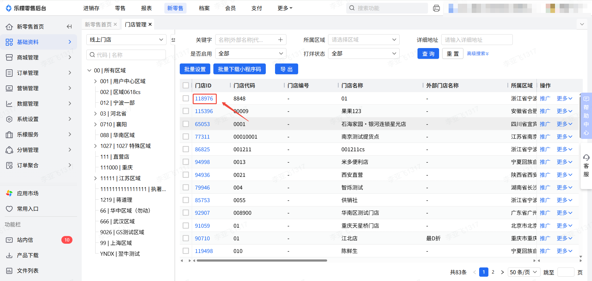批量下载小程序码 | 可以批量下载勾选的门店的小程序码 |