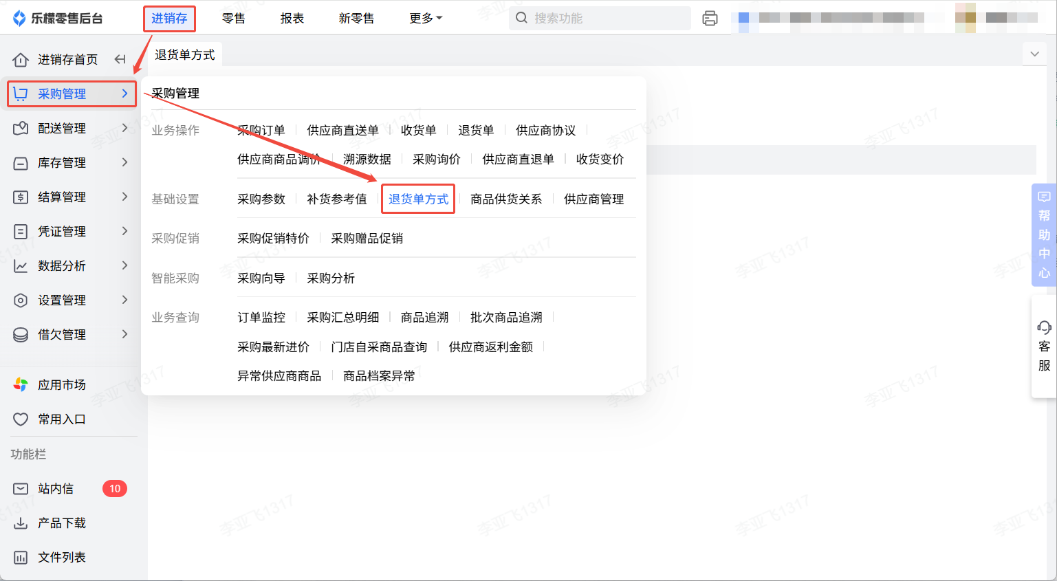 👉【操作路径】:进销存-采购管理-退货单方式