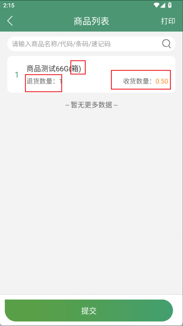 仓配app收货5件后,收货数量=0.5(按常用单位转化),收货基本数量增加注释,差异数量=1-0.5=0.5