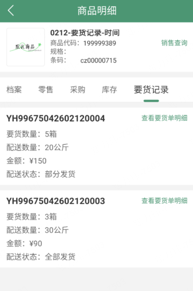 门店在操作app-商品查询时,可用查看商品的库存,但是无法核实最近的要货记录,无法确认缺货的商品最近是否已经要货过了。特此增加功能支持查看商品要货记录