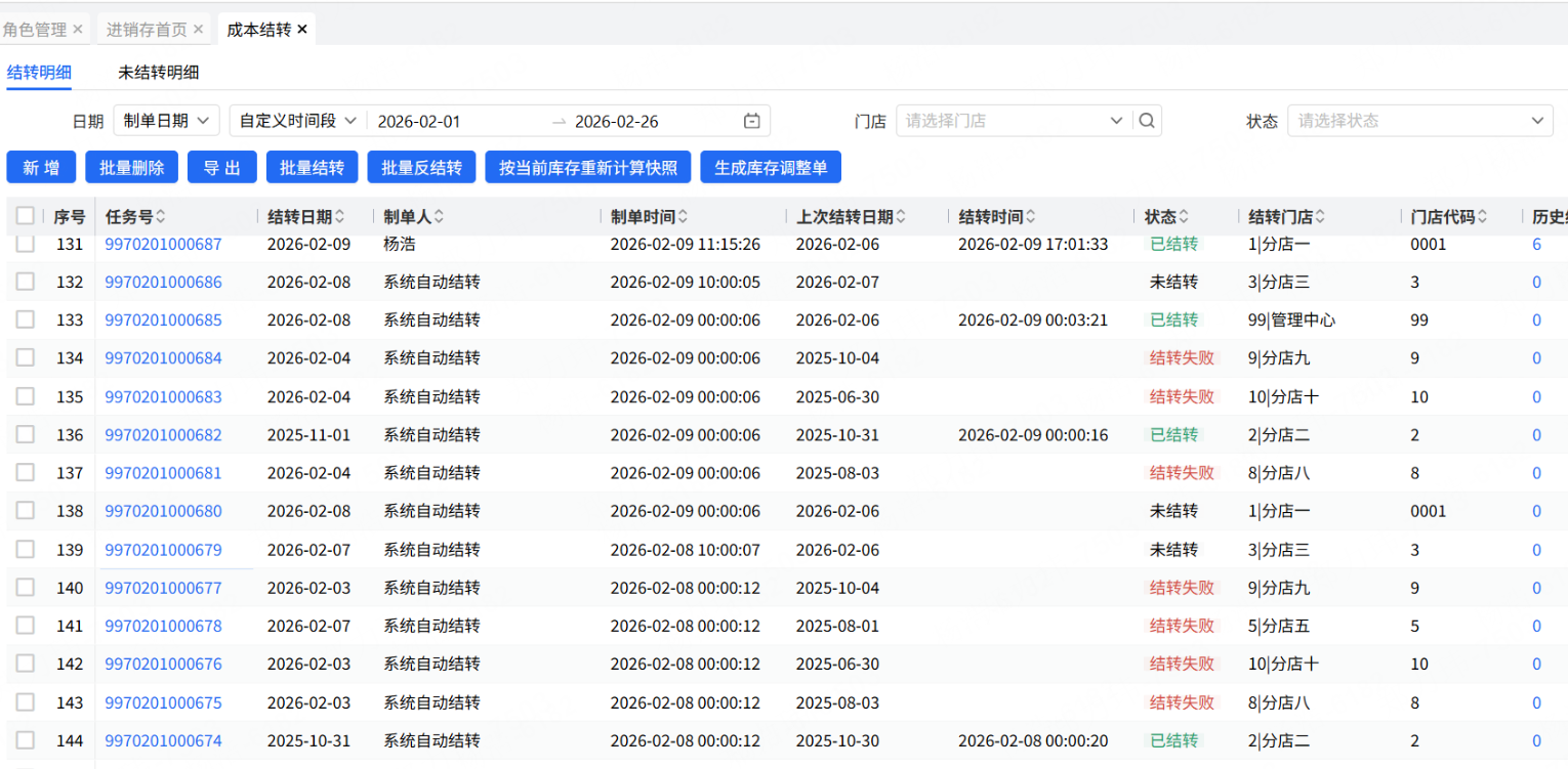 无“成本结转-编辑”权限,“任务号”字段置灰不可点击(未结转、结转失败)
