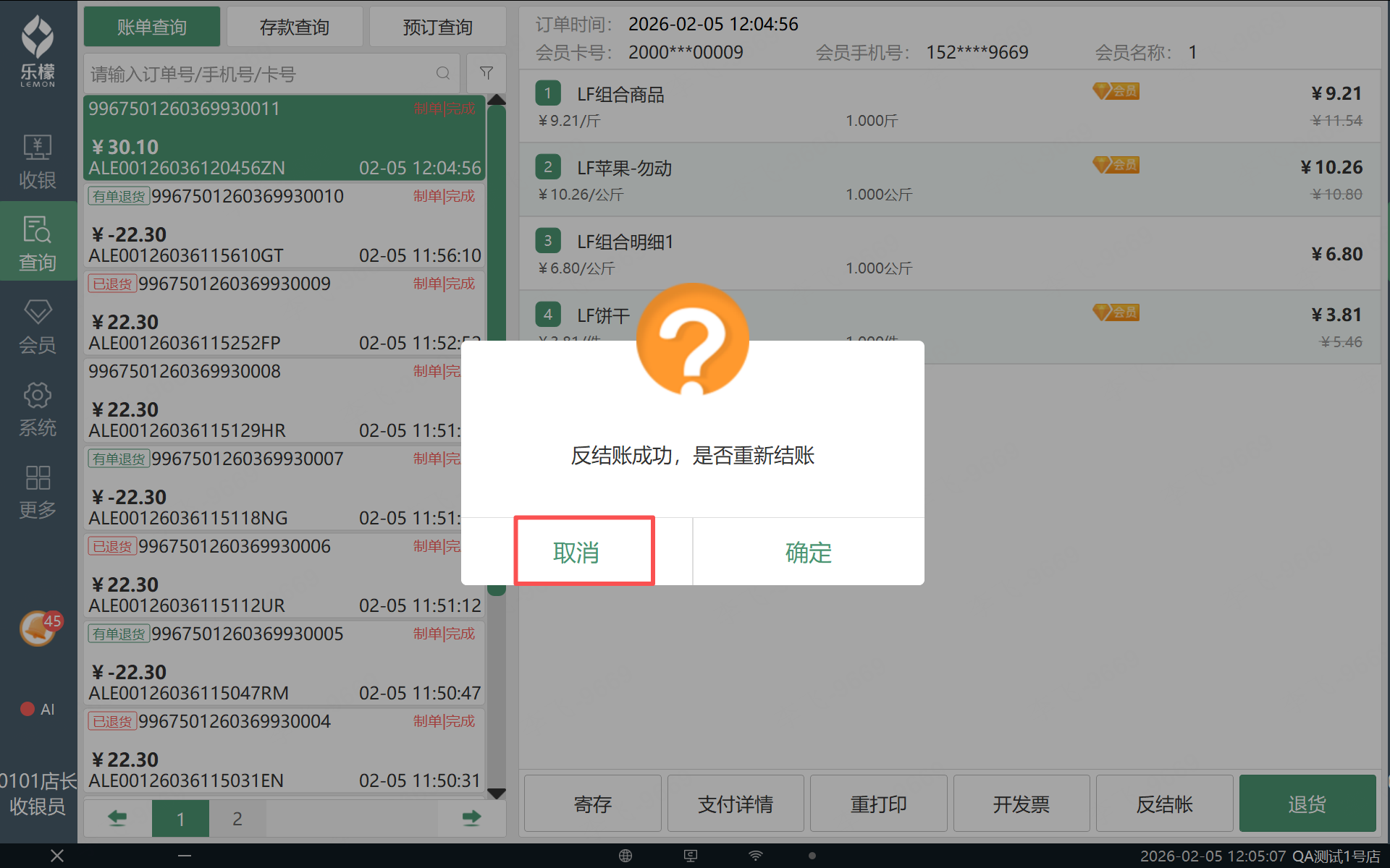 乐檬pos--反结账流程增加是否需要重新结账