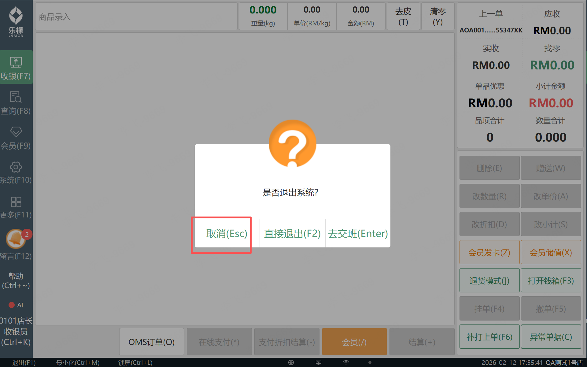 乐檬pos--前台退出时增加提示