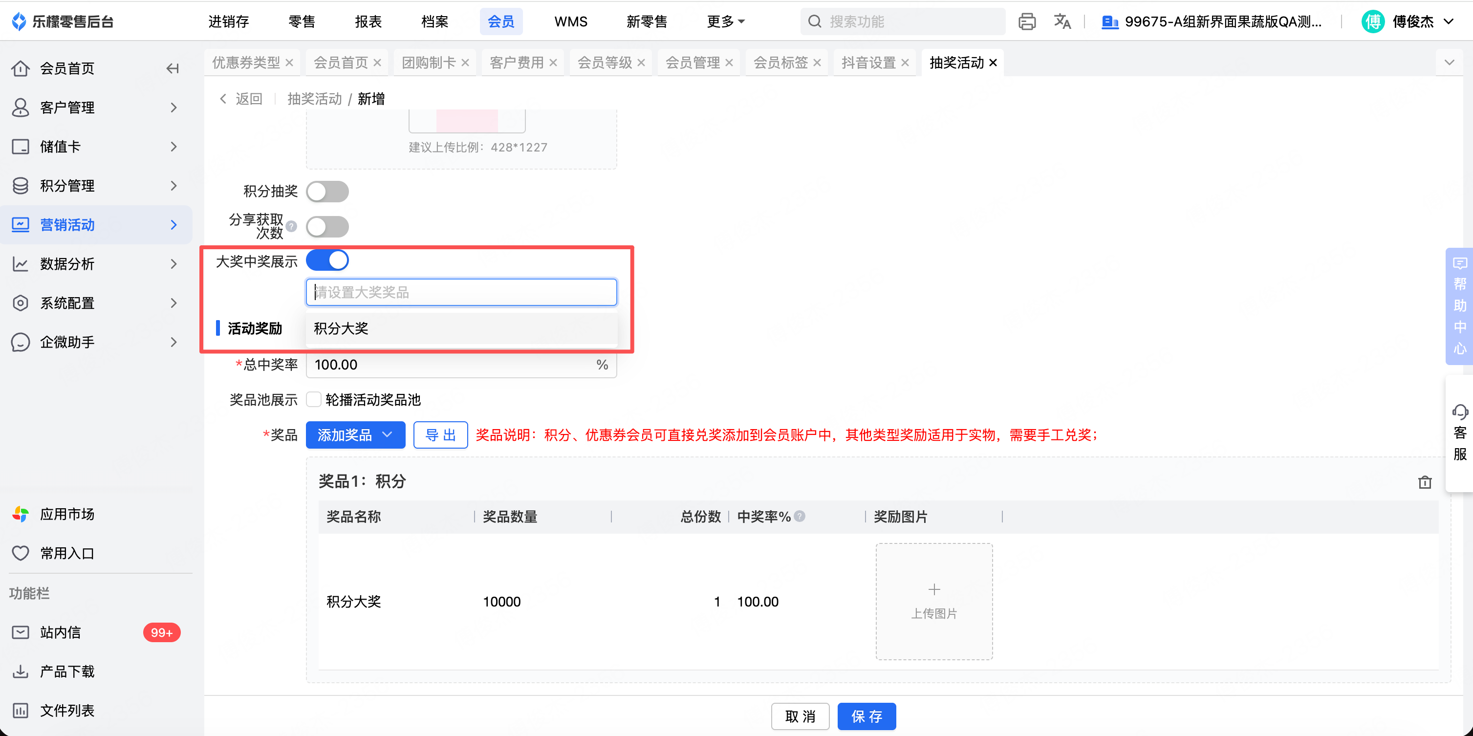 客户反馈:目前活动页面中奖公示无法体现大奖名单,在设置奖品是可以增加选项突出大奖公示,让顾客更有积极性可以参与