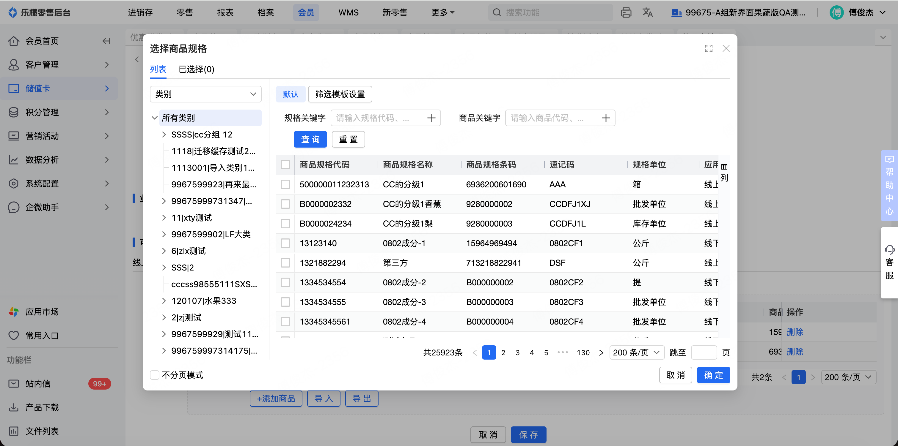 全渠道会员-支持多规格商品选择