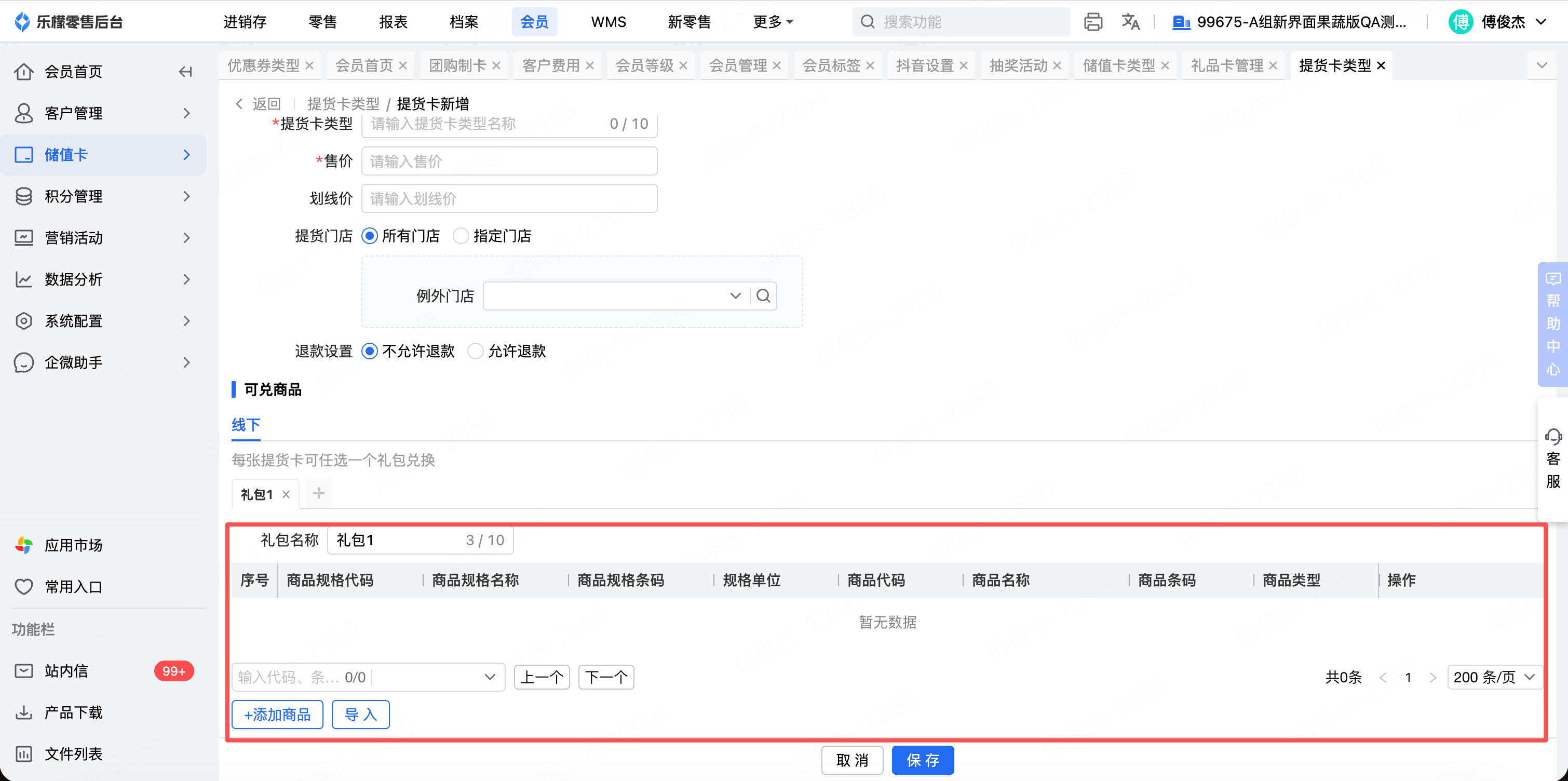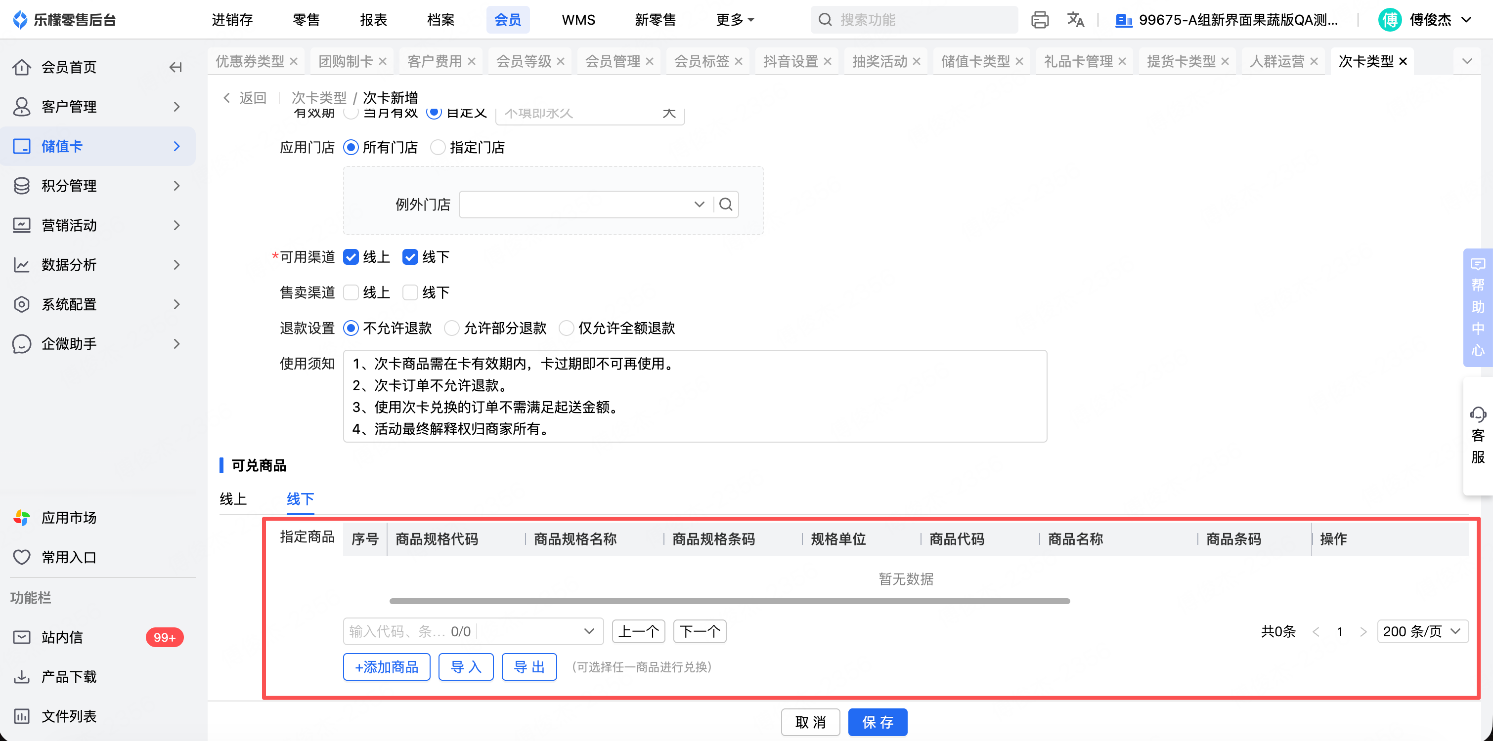 1、礼品卡:当前礼品卡-线下可用商品允许设置编辑单规格的商品