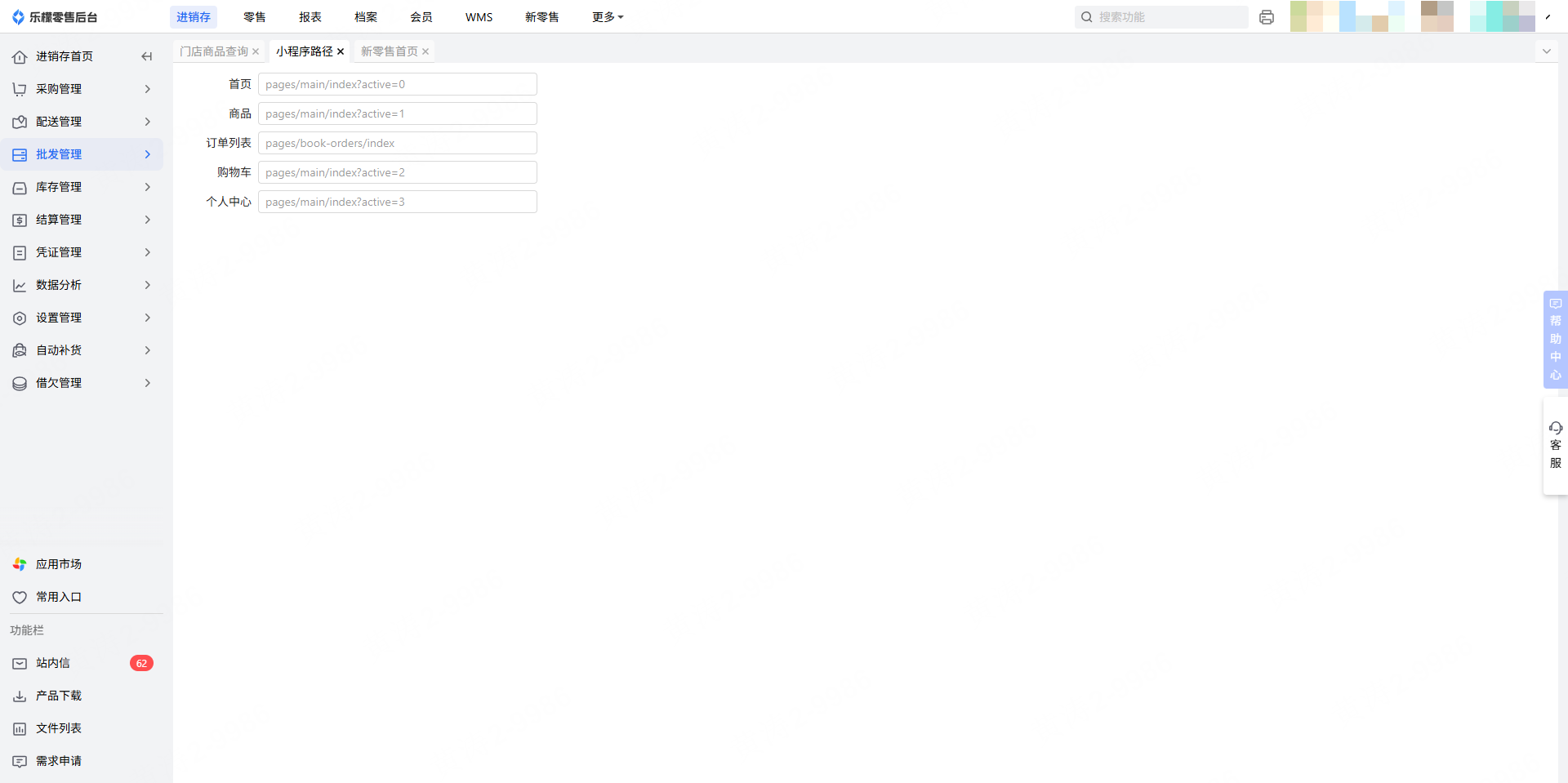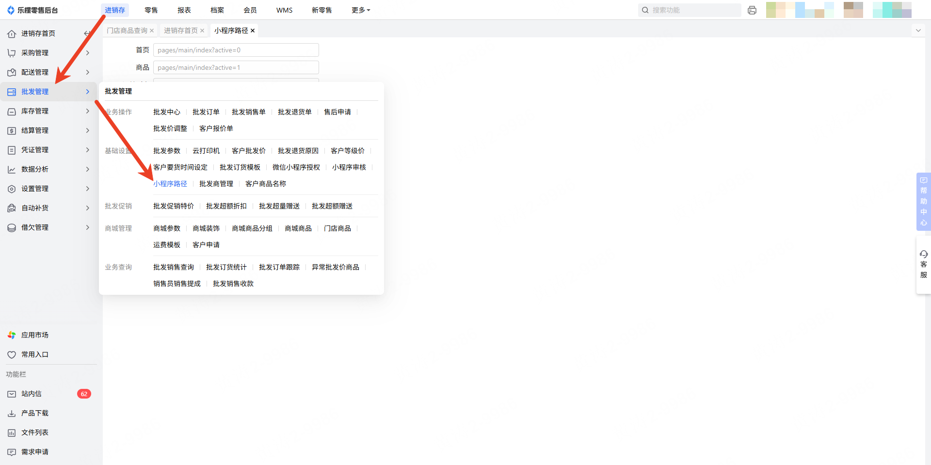 进销存-批发管理-小程序路径