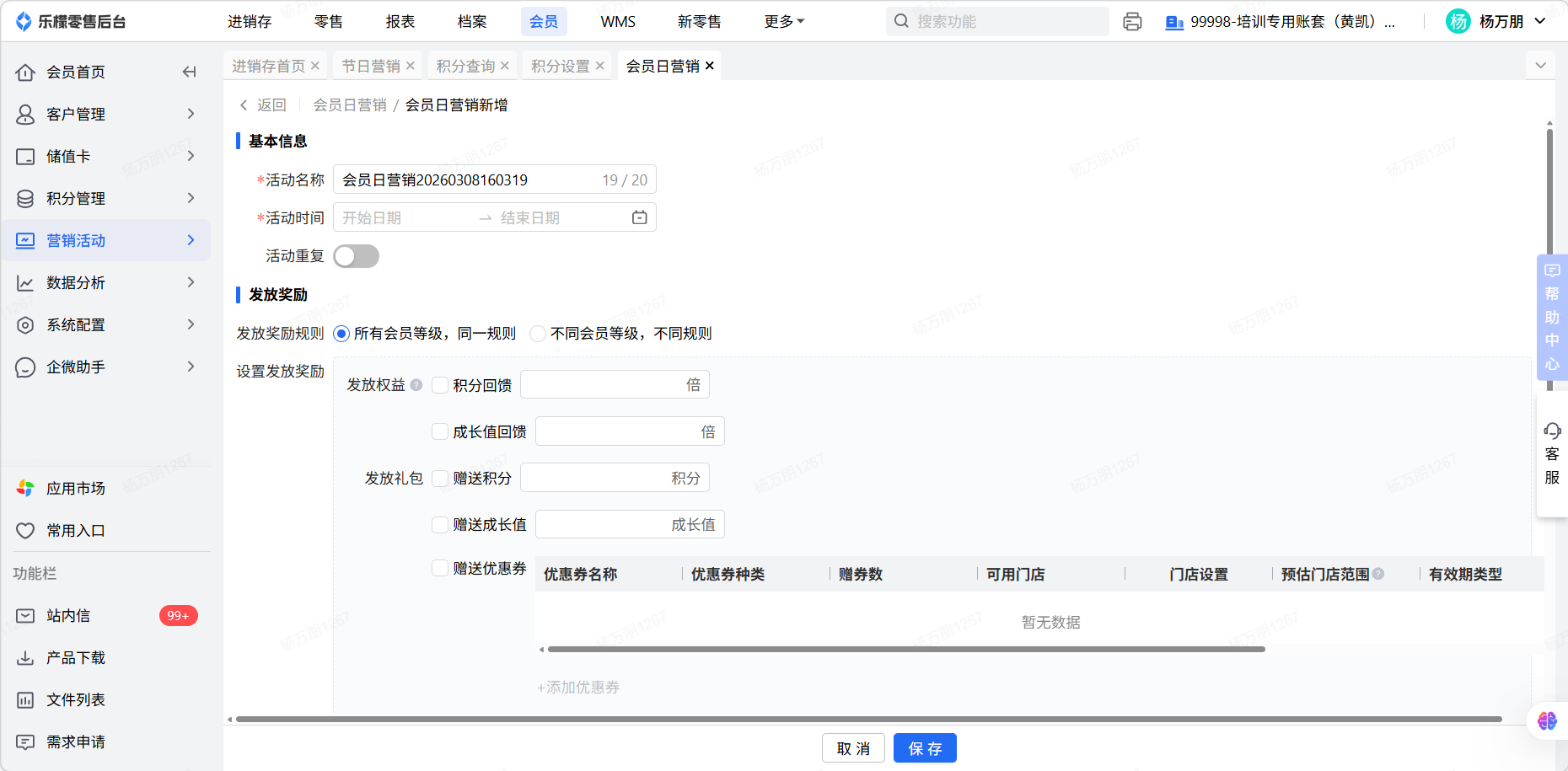 全渠道会员-会员日营销,新增系统会员日营销