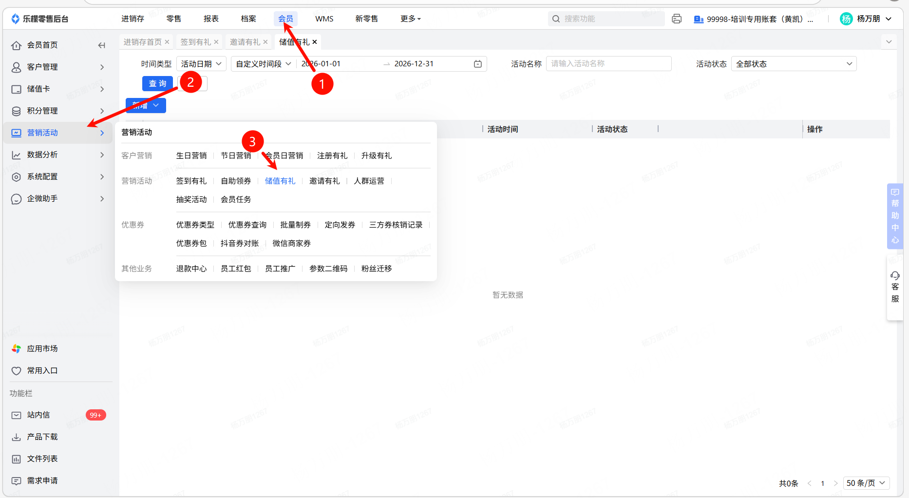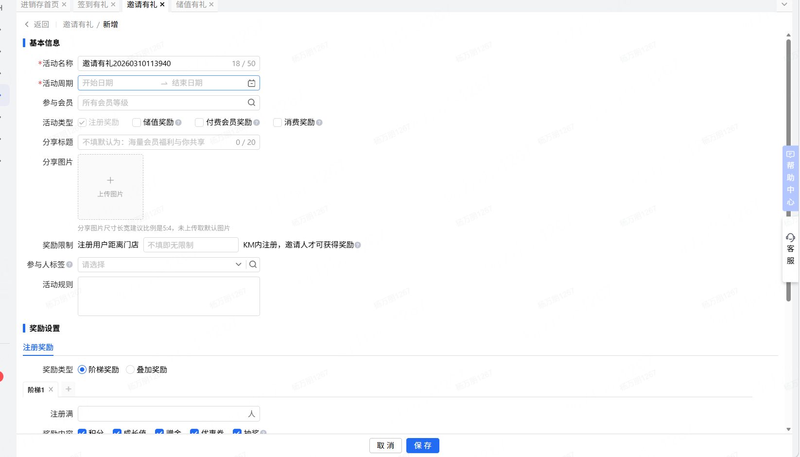 👉【操作路径】:1.会员-营销活动-邀请有礼