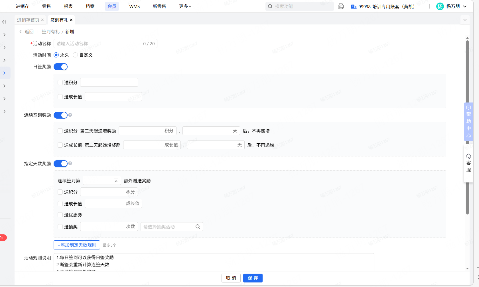 👉【操作路径】:·会员-营销活动-签到有利