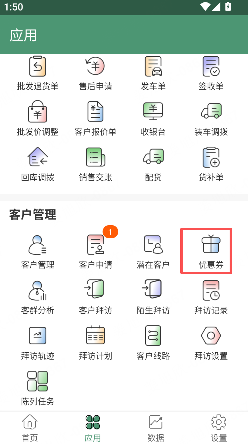 1、应用-客户管理:新增一个模块“优惠券”,支持业务员发放优惠券给关联的客户