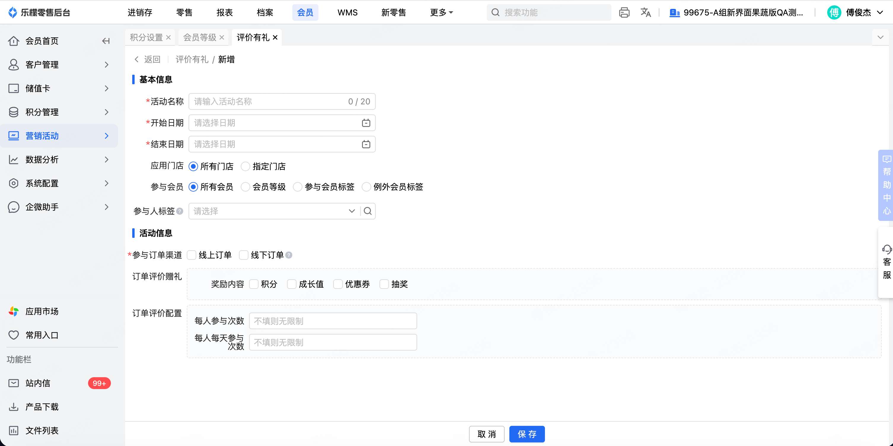 全渠道会员-营销活动,新增活动「评价有礼」: