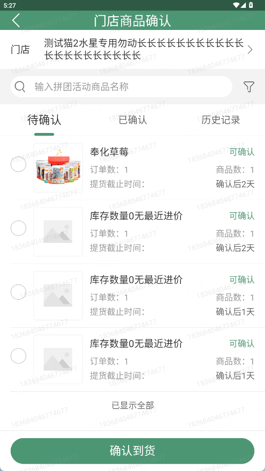 拼团、乐团团、好货团,APP端门店到货确认,增加时间筛选项,默认根据活动时间查最近一个月需要确认收货的订单,用户可以手动选择其他时间查询