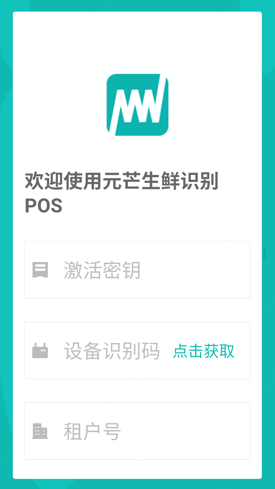 3、安装后打开app,录入激活秘钥、租户号,获取设备识别号后激活