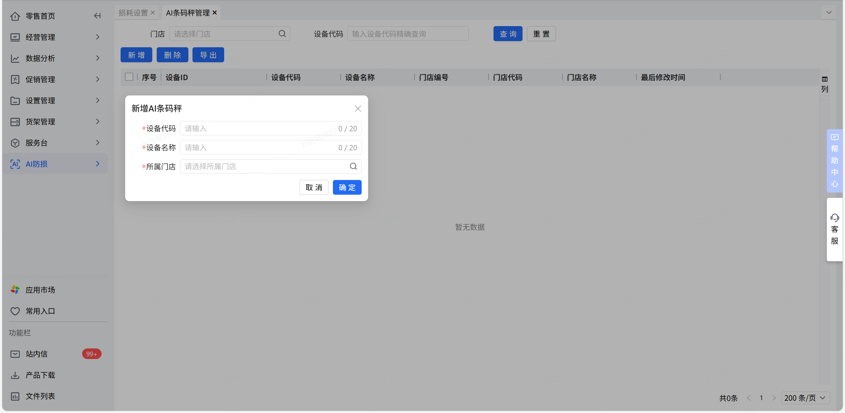 本次系统新增AI条码秤防损功能,主要功能包括:
