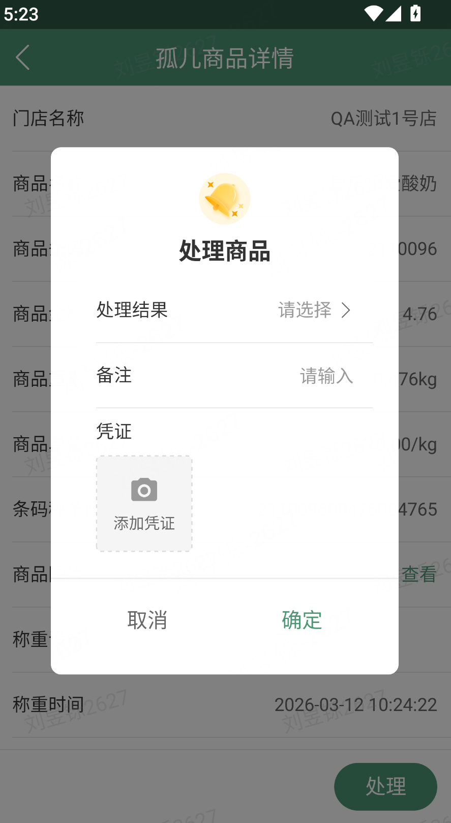 选择已寻回后,变更为已寻回状态,此记录不纳入损耗范围;上传凭证为必填项(找回后需重新打开放回,不能使用原来的条码秤条码,否则无法二次寻回!!!)