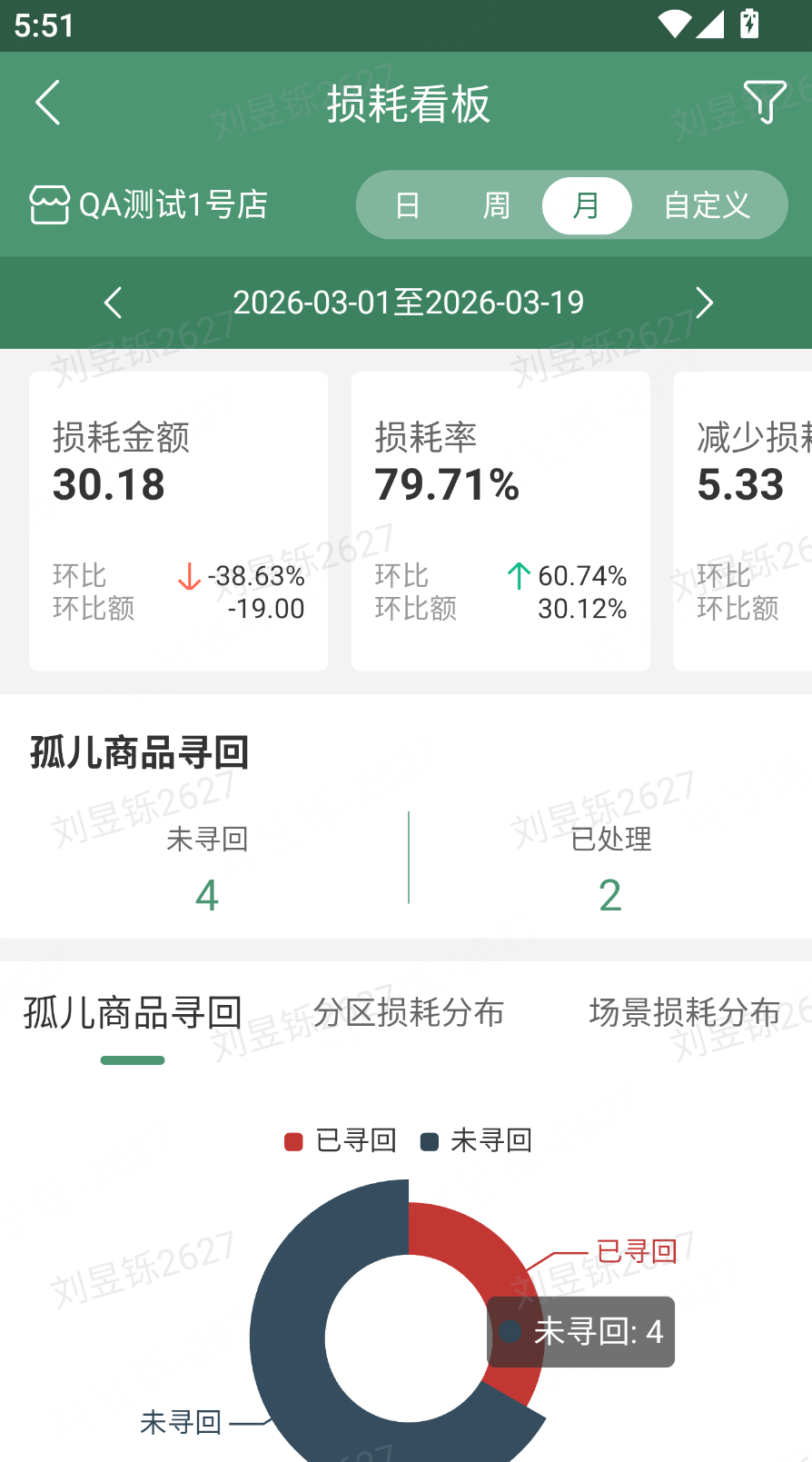 损耗看板——管理人员查看门店损耗数据并跟进店员孤儿商品处置情况