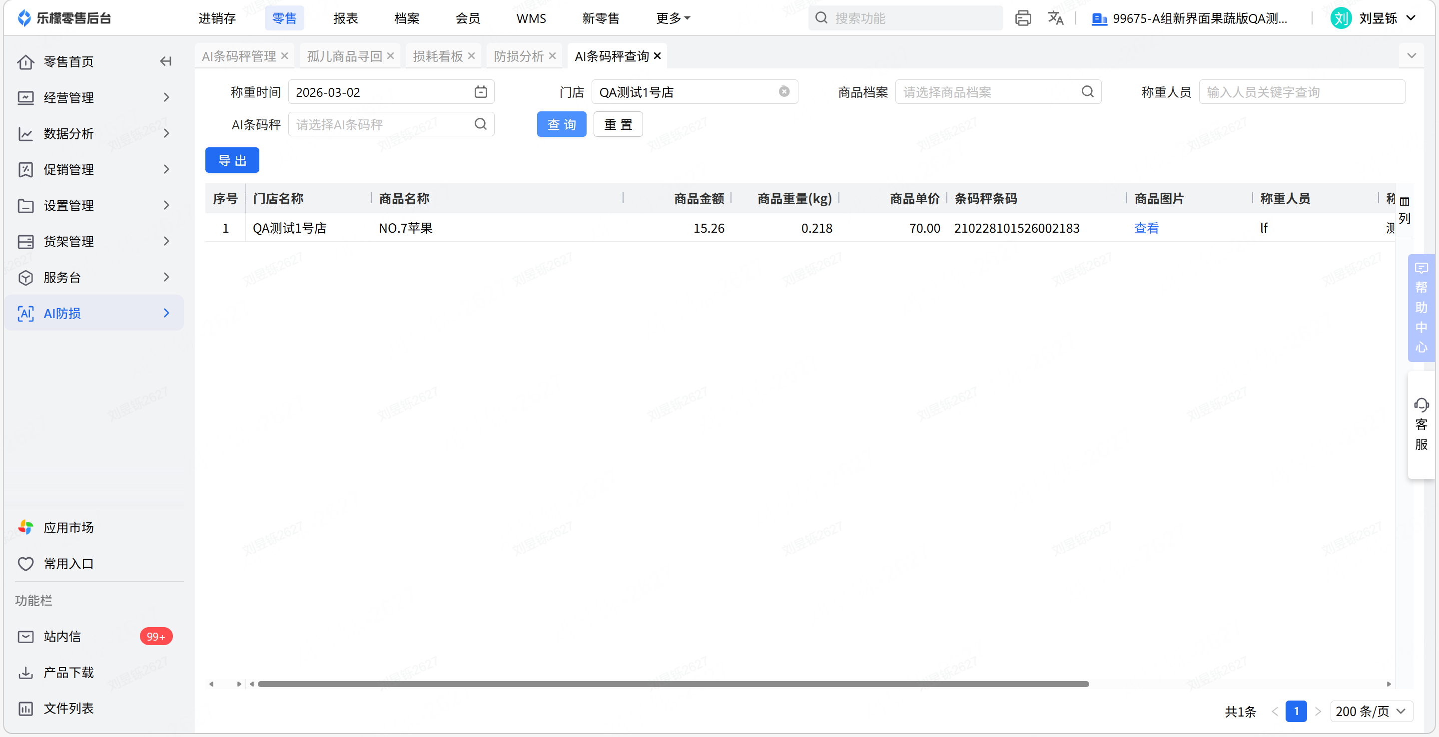 路径:零售-AI防损-AI条码秤防损-AI条码秤查询