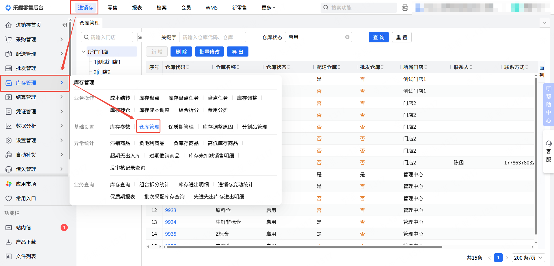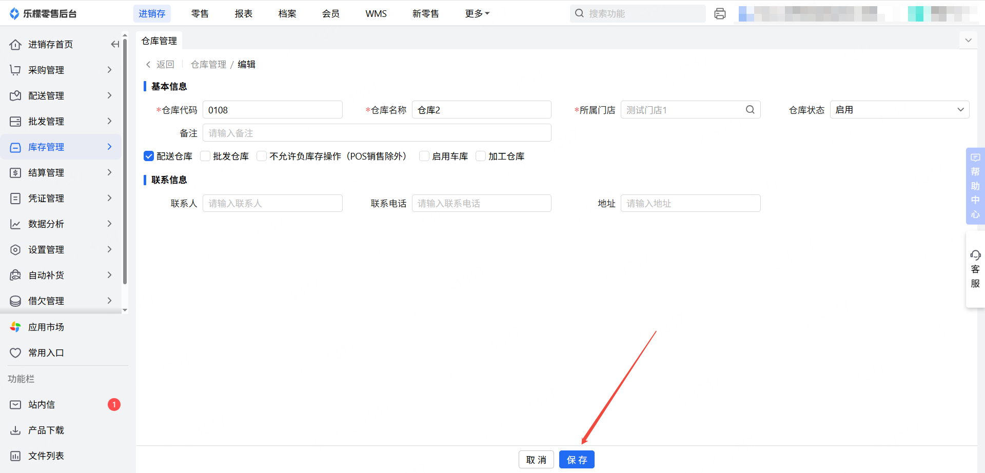 👉【操作路径】:1.进销存-库存管理-仓库管理