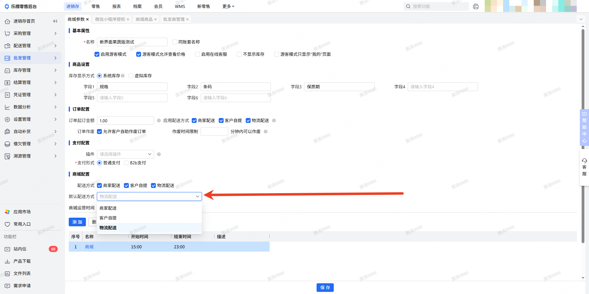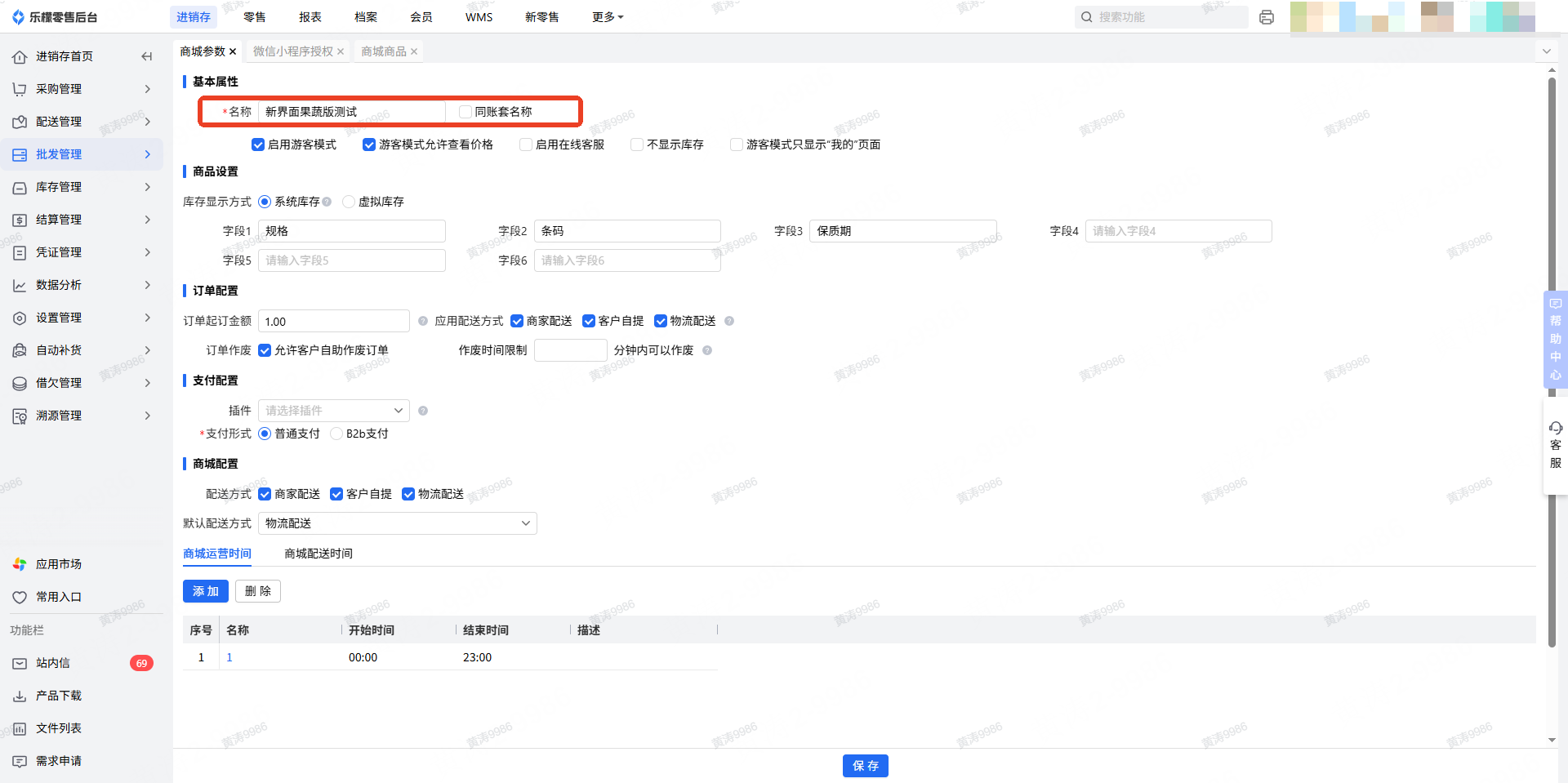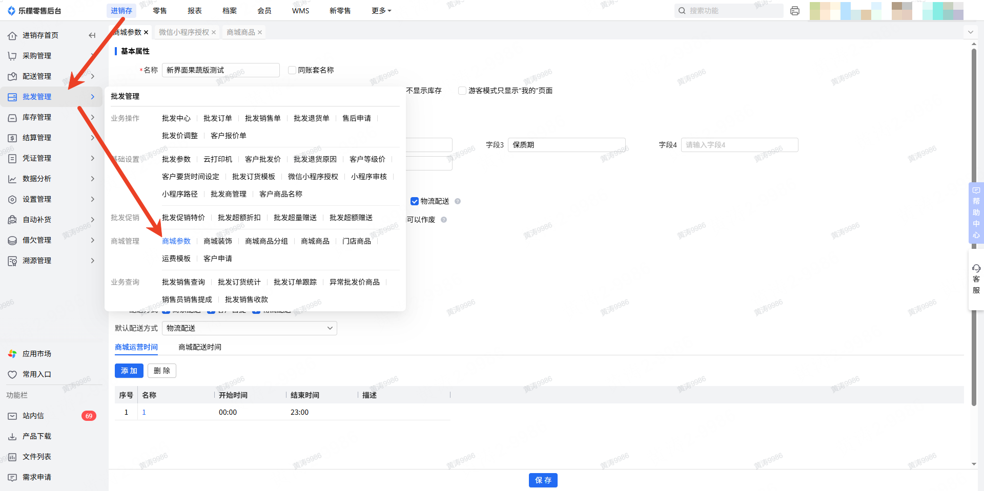 👉【操作路径】:进销存-批发管理-商城参数