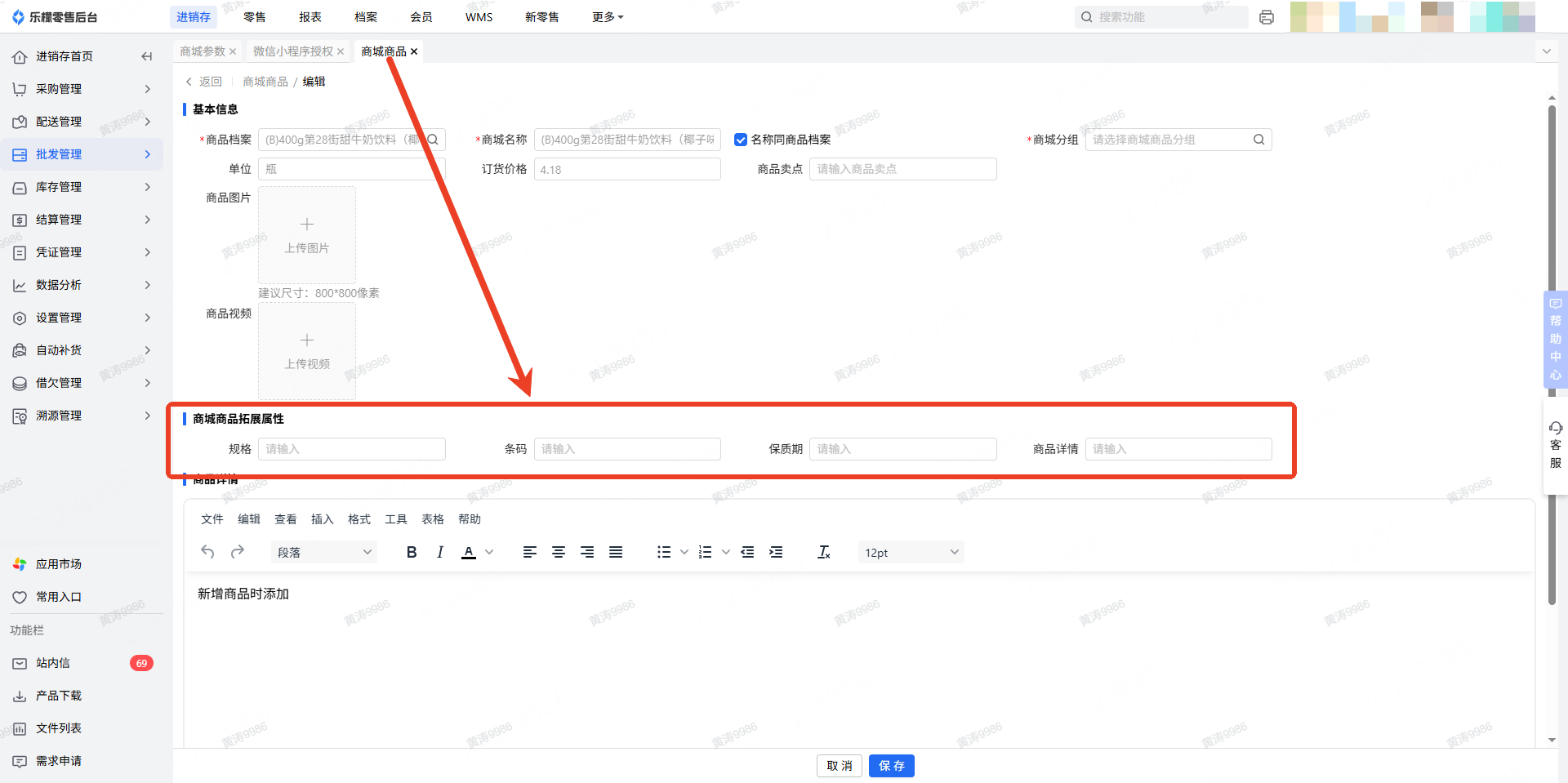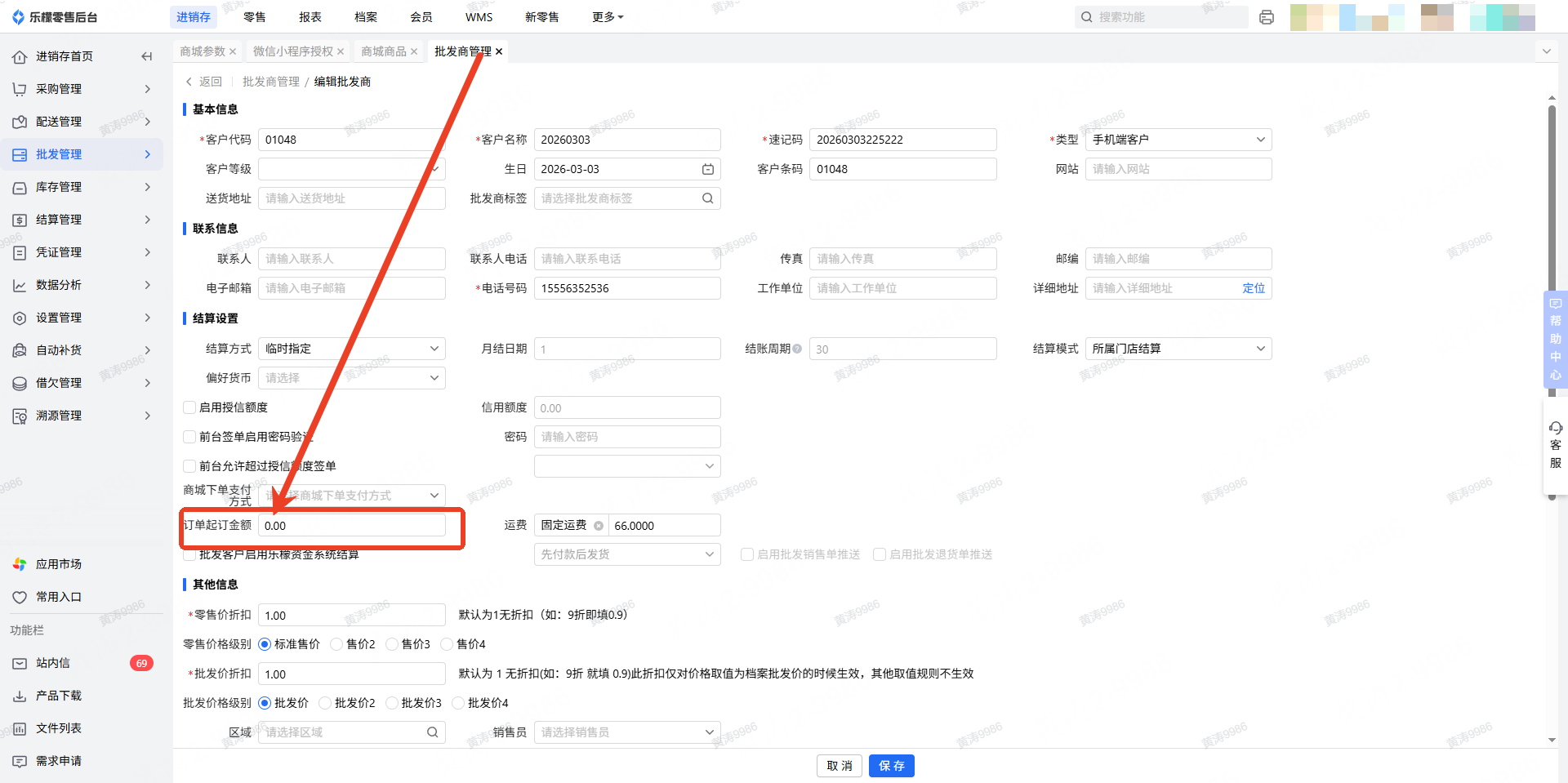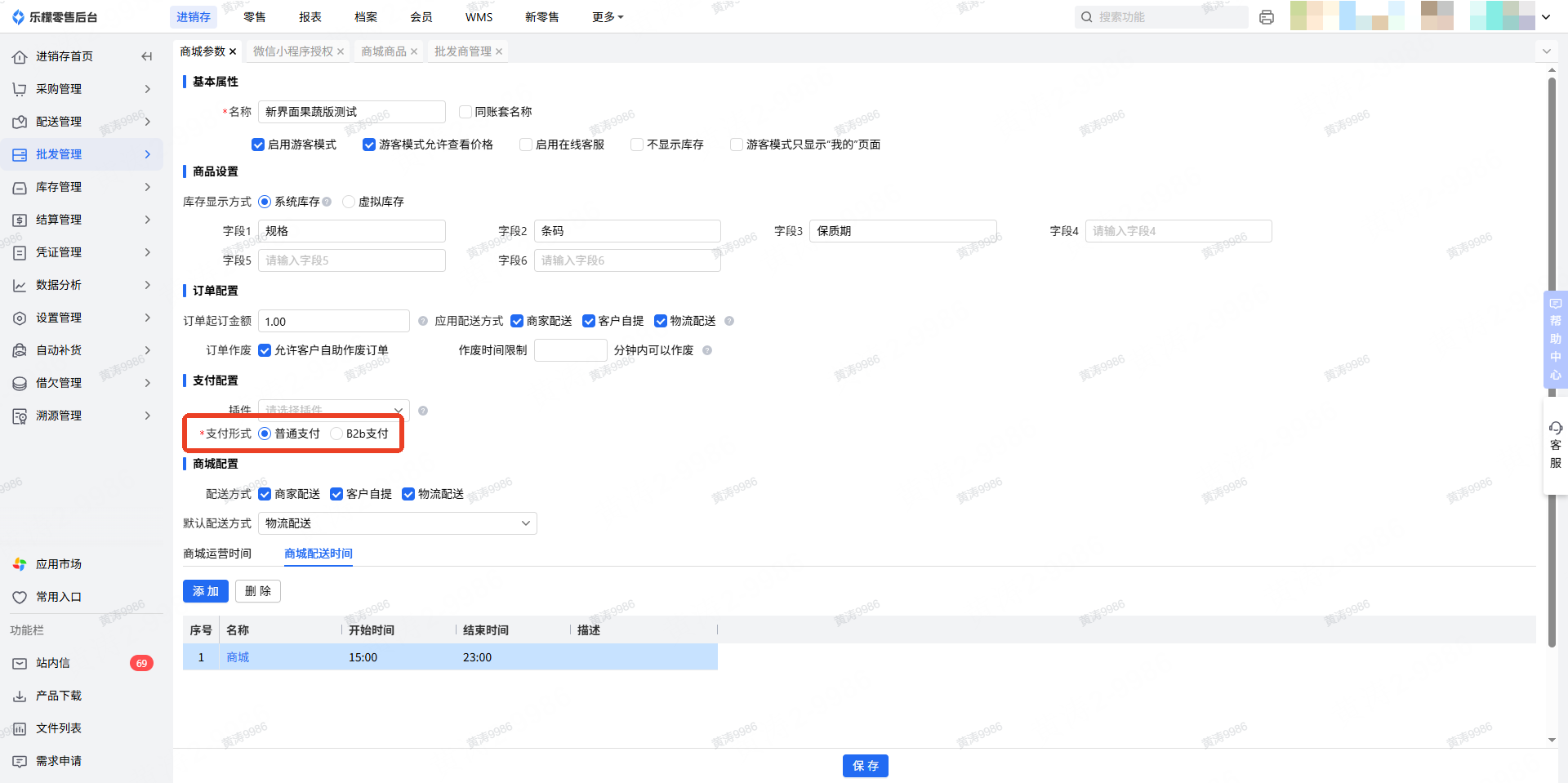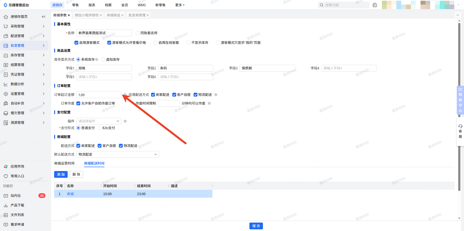 👉【操作路径】:进销存-批发管理-商城参数
