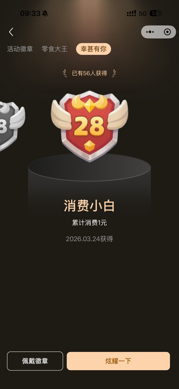 顾客还可前往「我的徽章」页面,查看累计已获取的徽章信息,同样也支持炫耀自己所获取的所有徽章