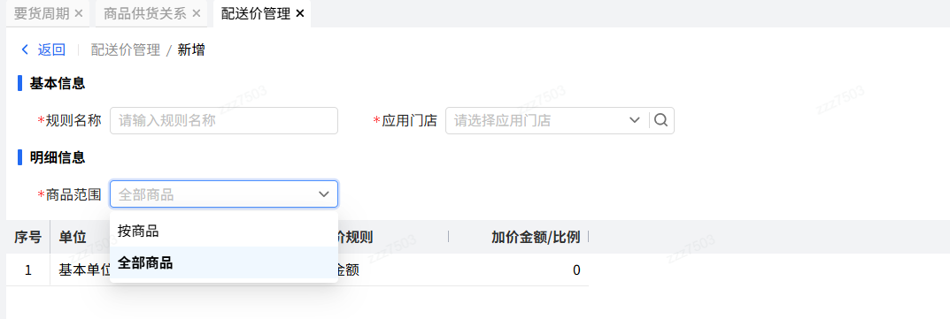 配送价管理增加“商品范围”,默认=按商品