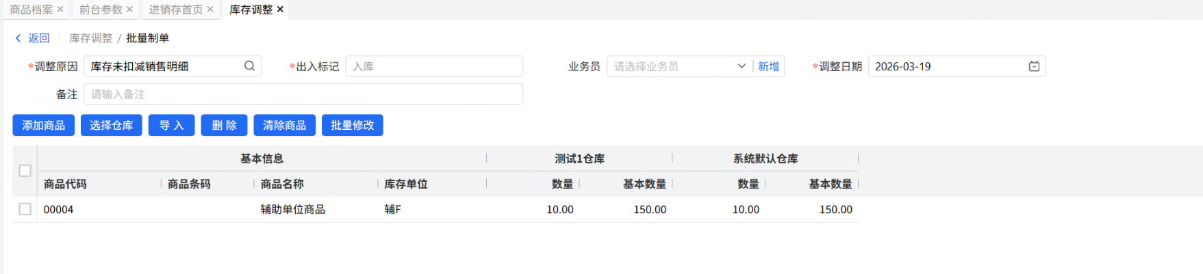 乐檬进销存 - 库存调整单批量制单复制单位优化