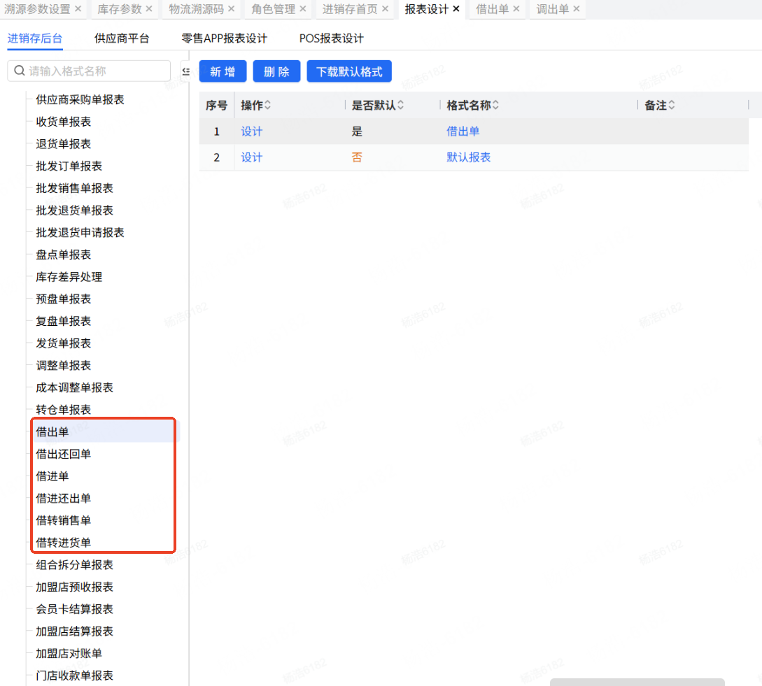 单据:借出单、借出还回单、借转销售单、借进单、借进还出单、借转进货单。默认格式上传