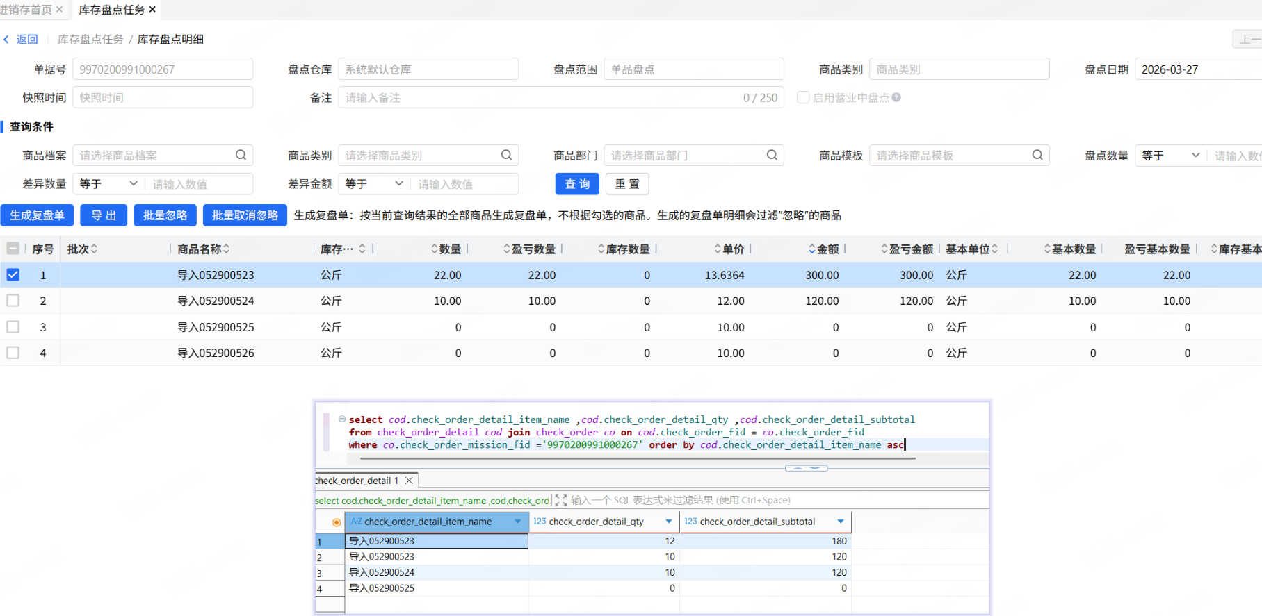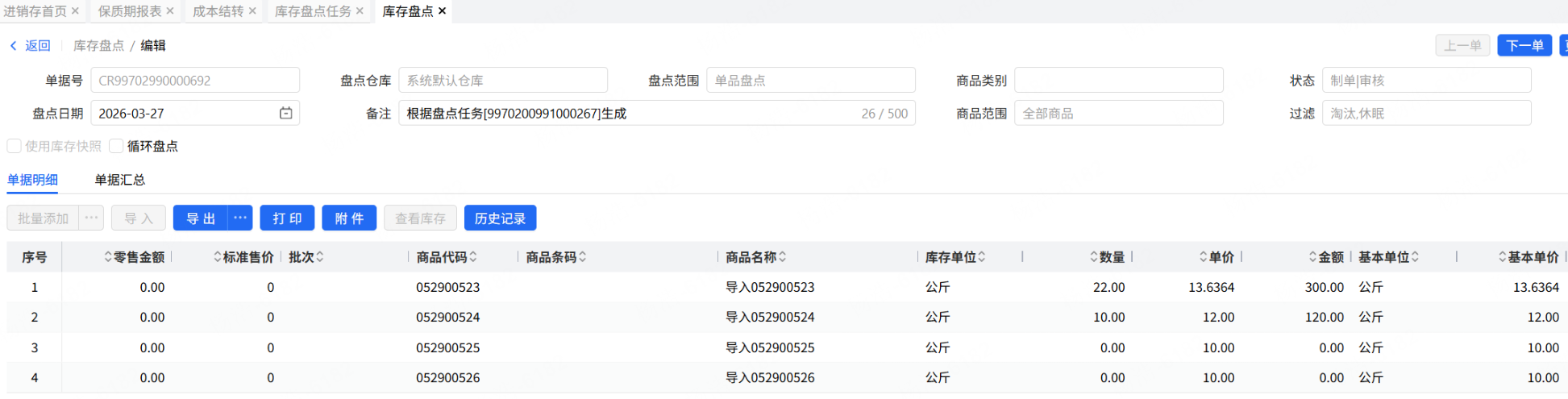 进入商品明细界面时,单价逻辑修改为,关联盘点单的商品金额之和/关联盘点单的商品数量之和