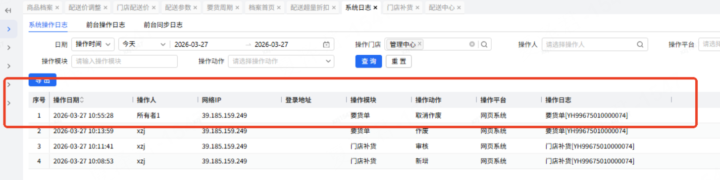 功能路径:重构web-要货单、重构web-系统日志