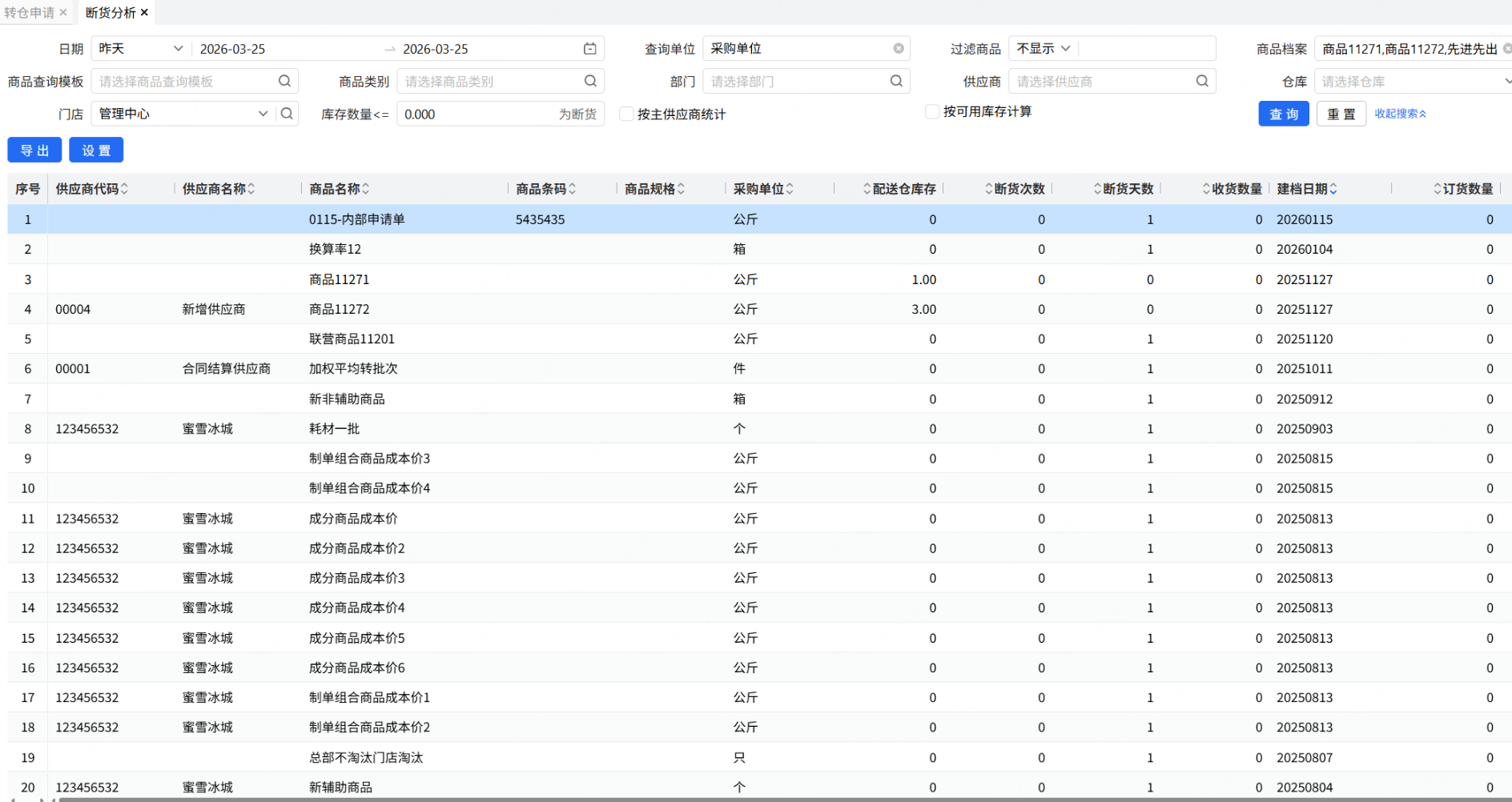 乐檬进销存 - 断货分析】隐藏“ 首次收货日期”