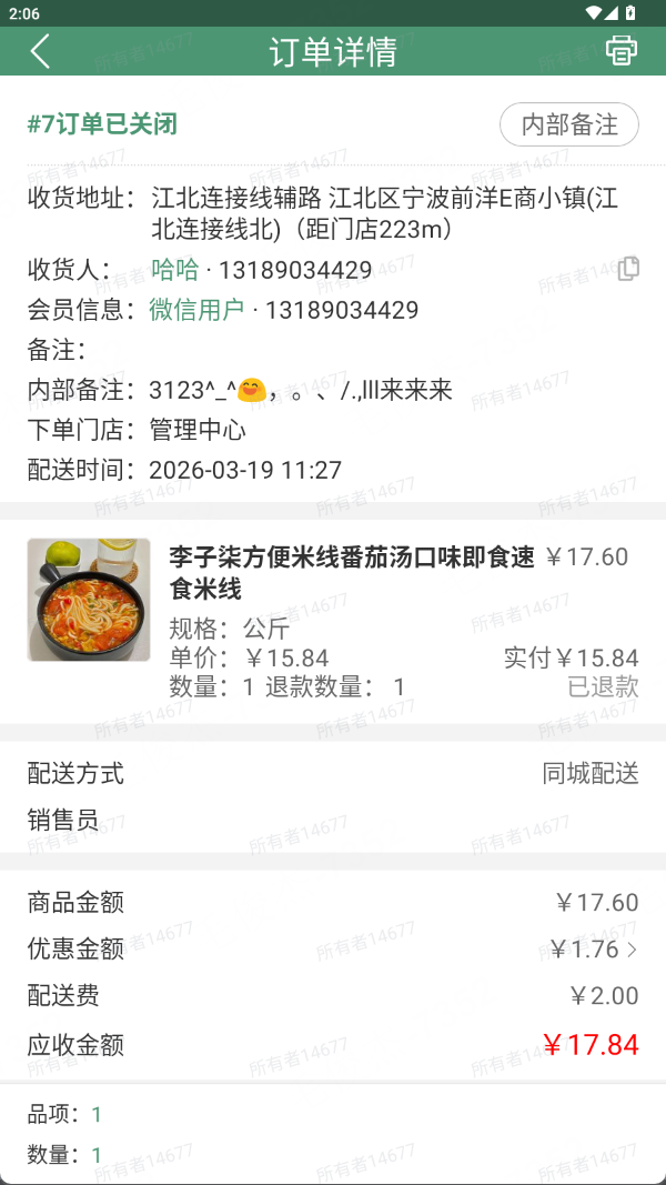 用户下单后,可能会联系门店增加备注,或者门店会根据订单商品自行增加备注。门店不一定有电脑,需要支持在APP上增加内部备注。