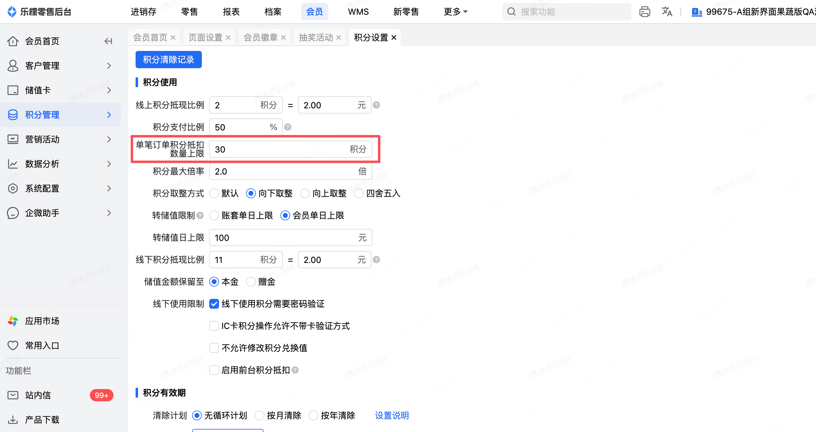 全渠道会员-新增单笔订单积分抵扣上限