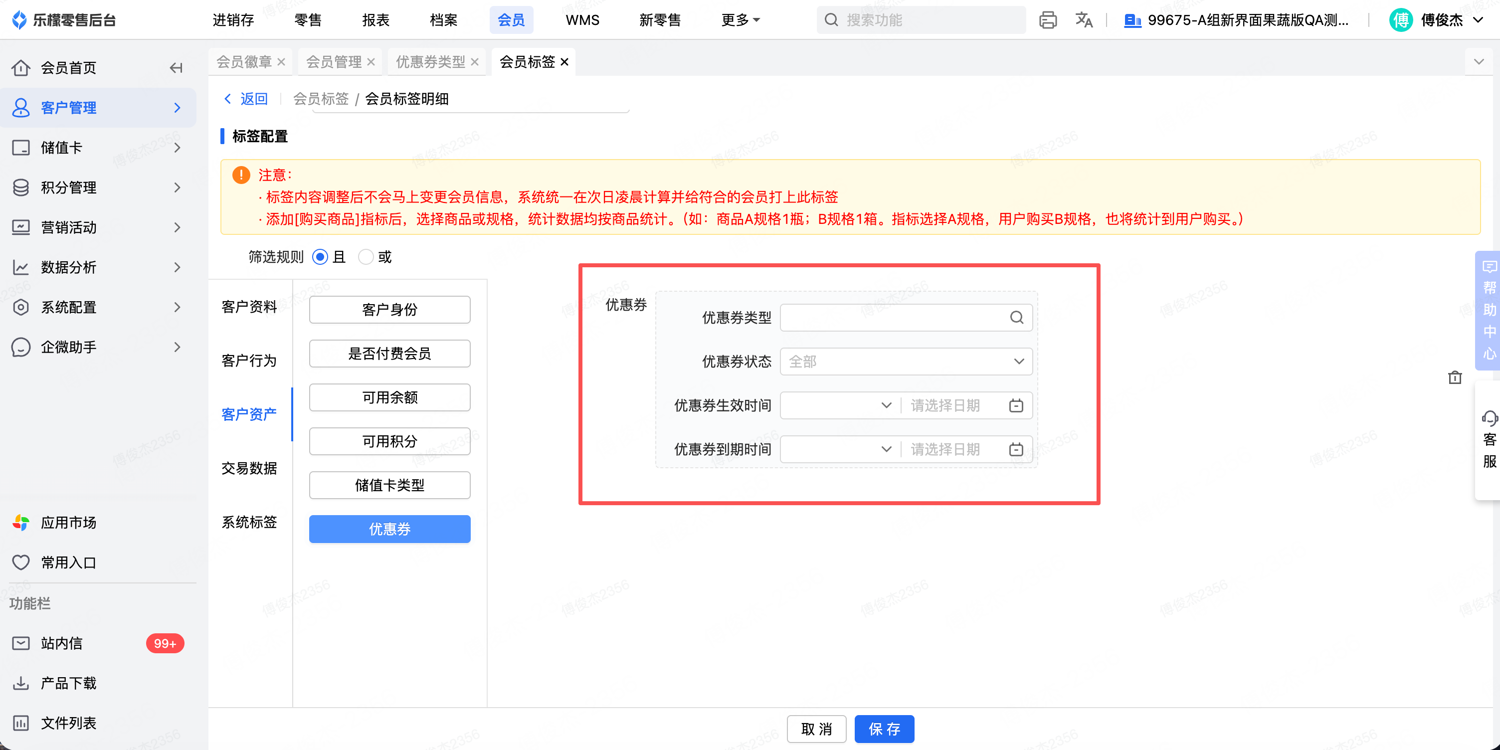 全渠道会员-会员标签新增优惠券条件