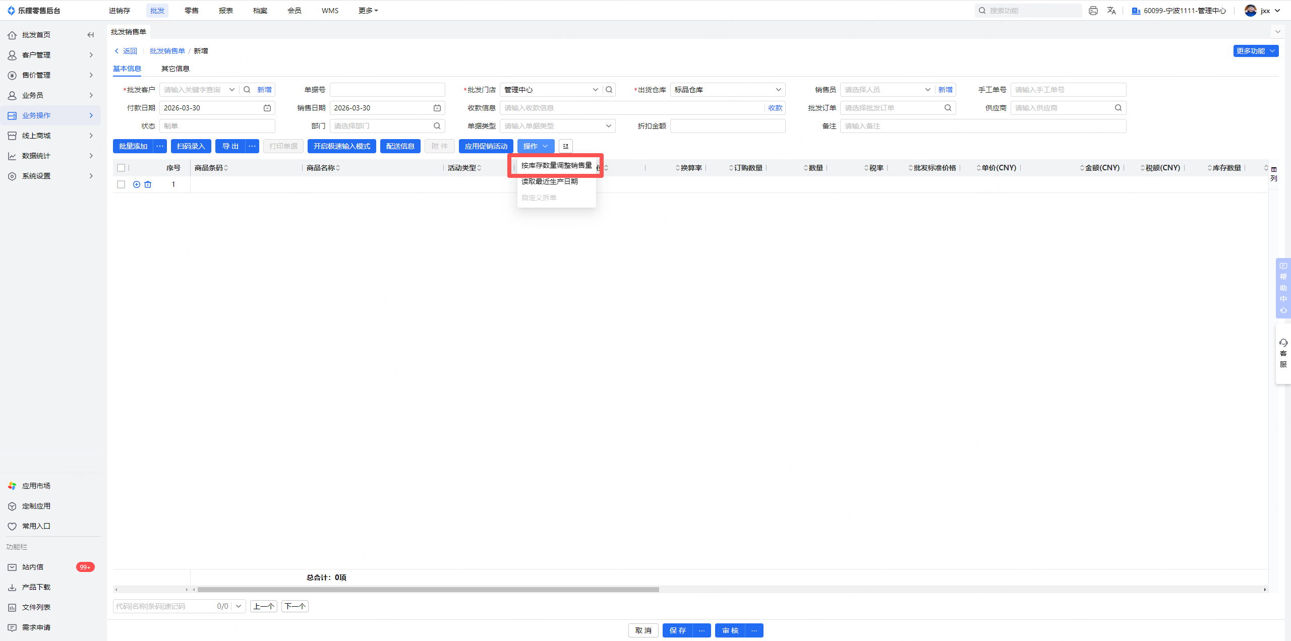 功能路径:批发-业务操作-批发销售单