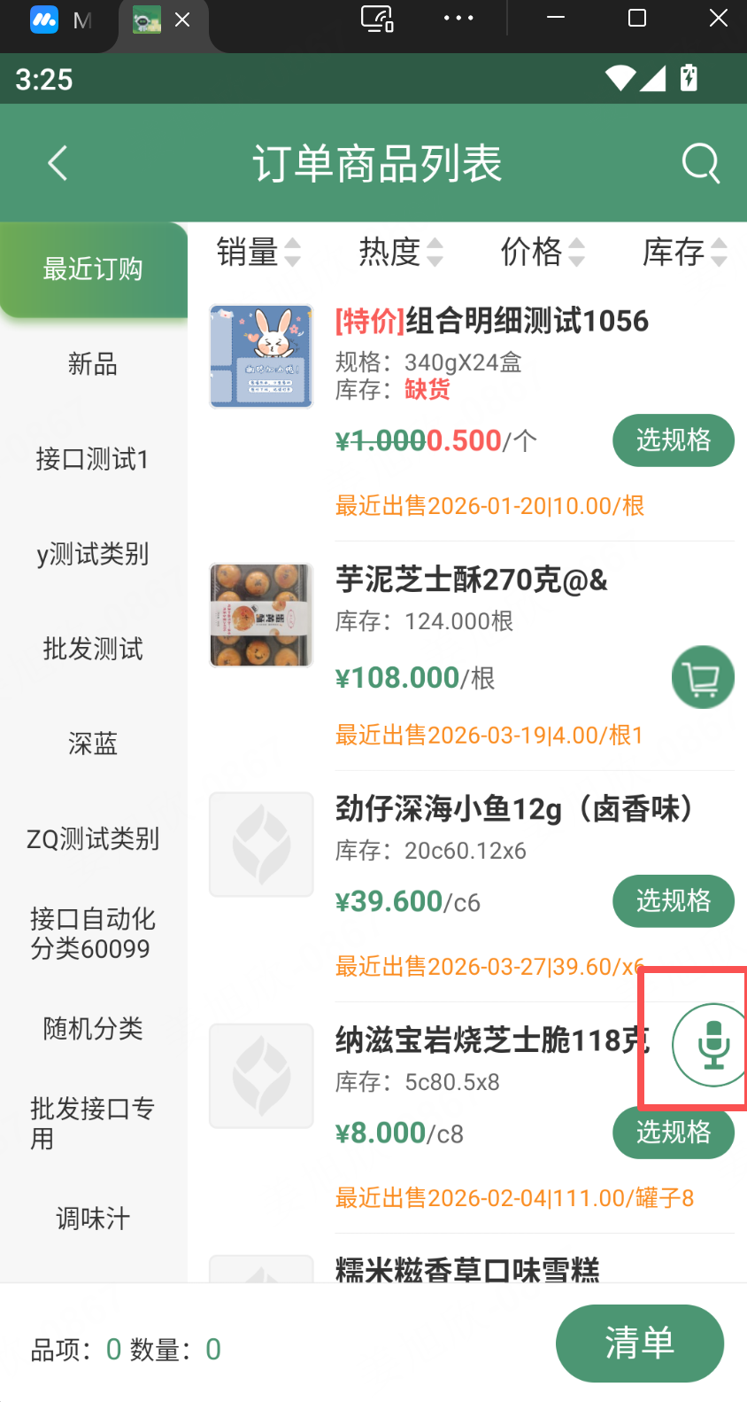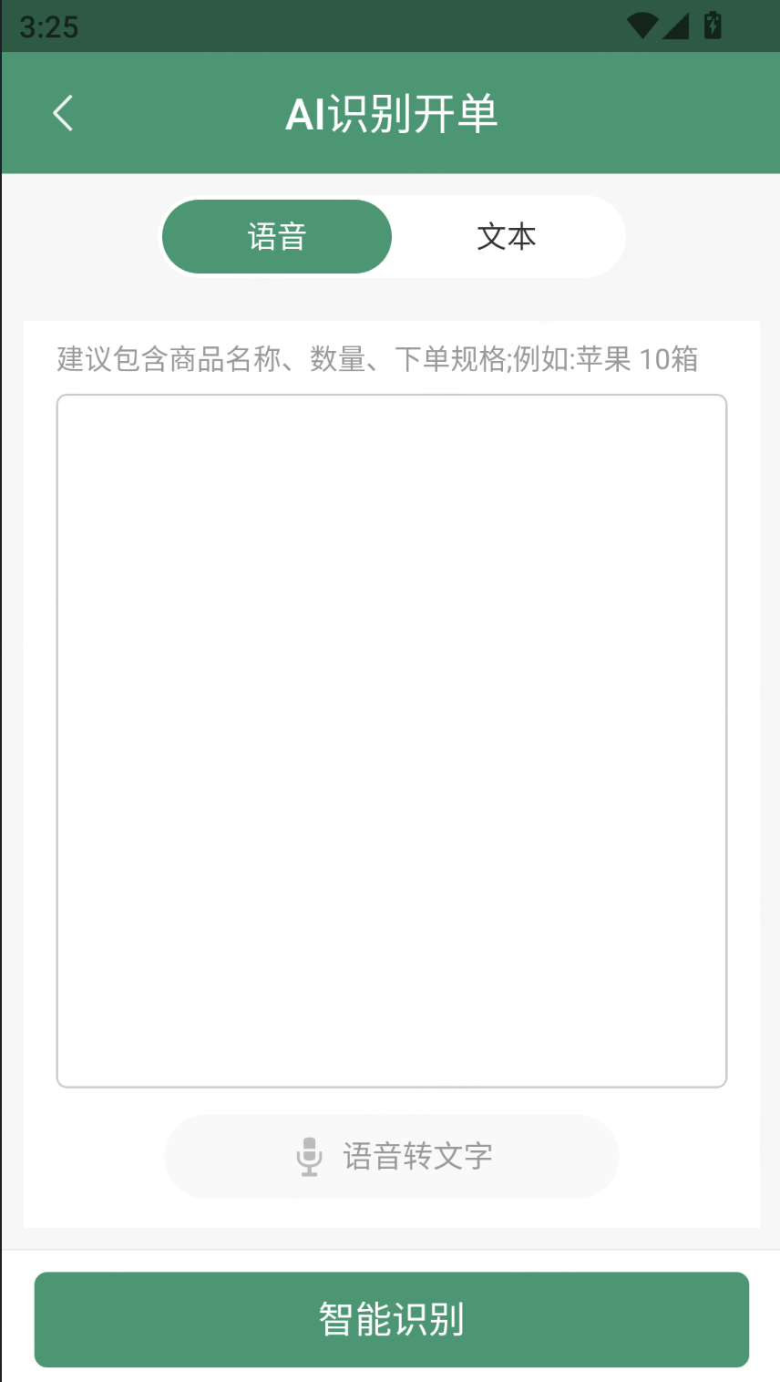 1、加购商品列表(订单开单、销售开单、退货开单、简洁开单、货补单、车销开单):新增一个悬浮按钮“AI识别”,需要实现通过语音和文本识别出文字,通过文字匹配商品和数量录入至清单中