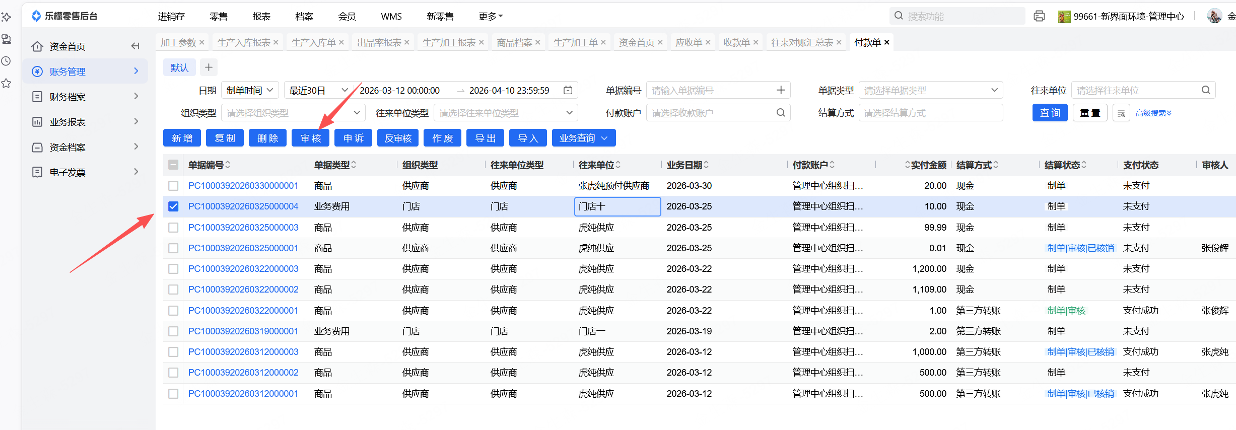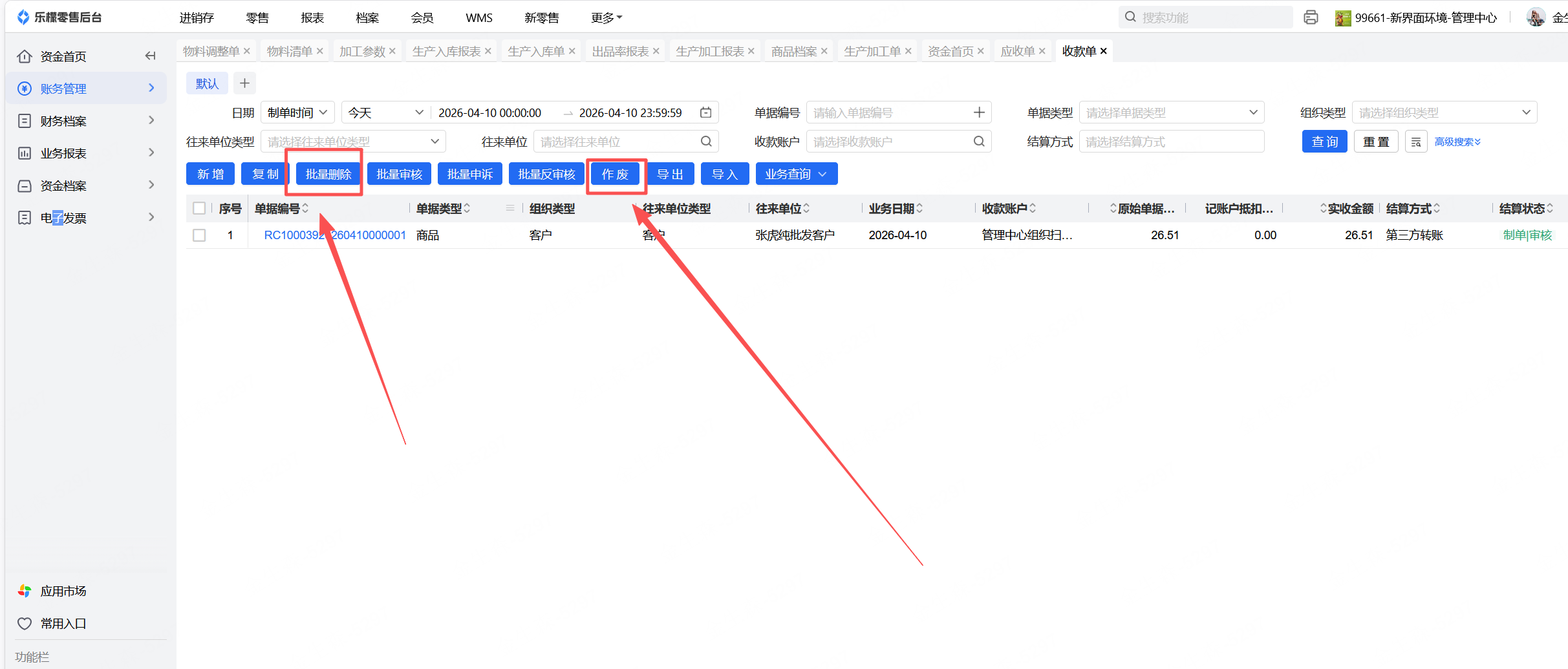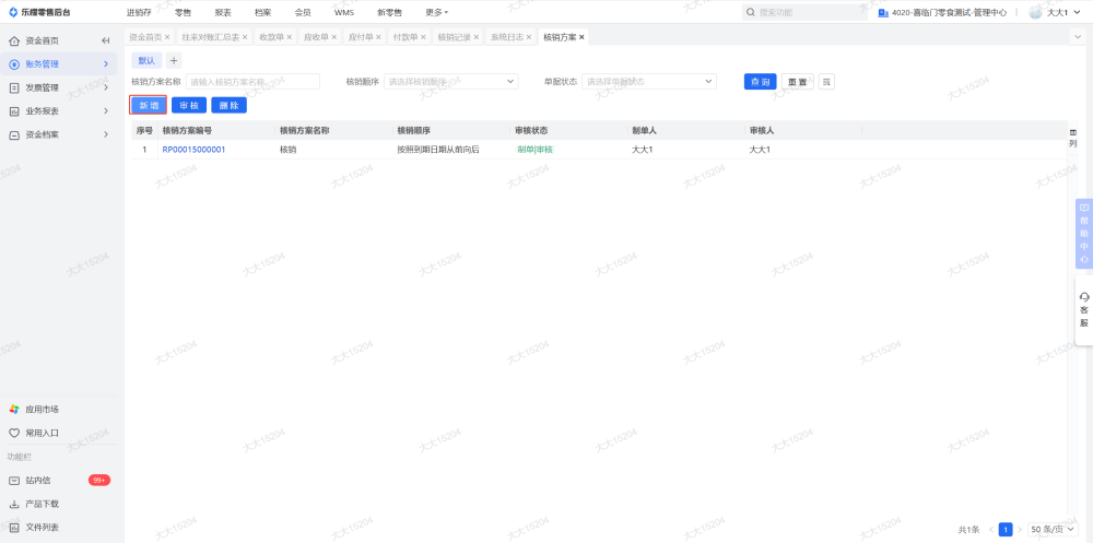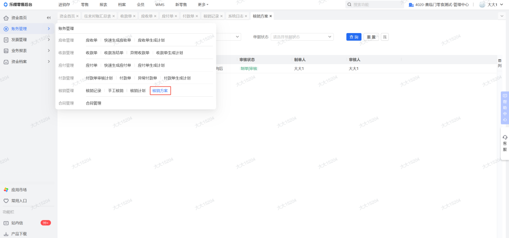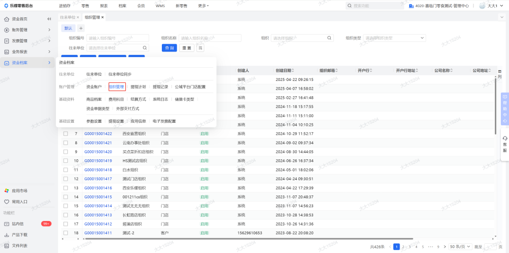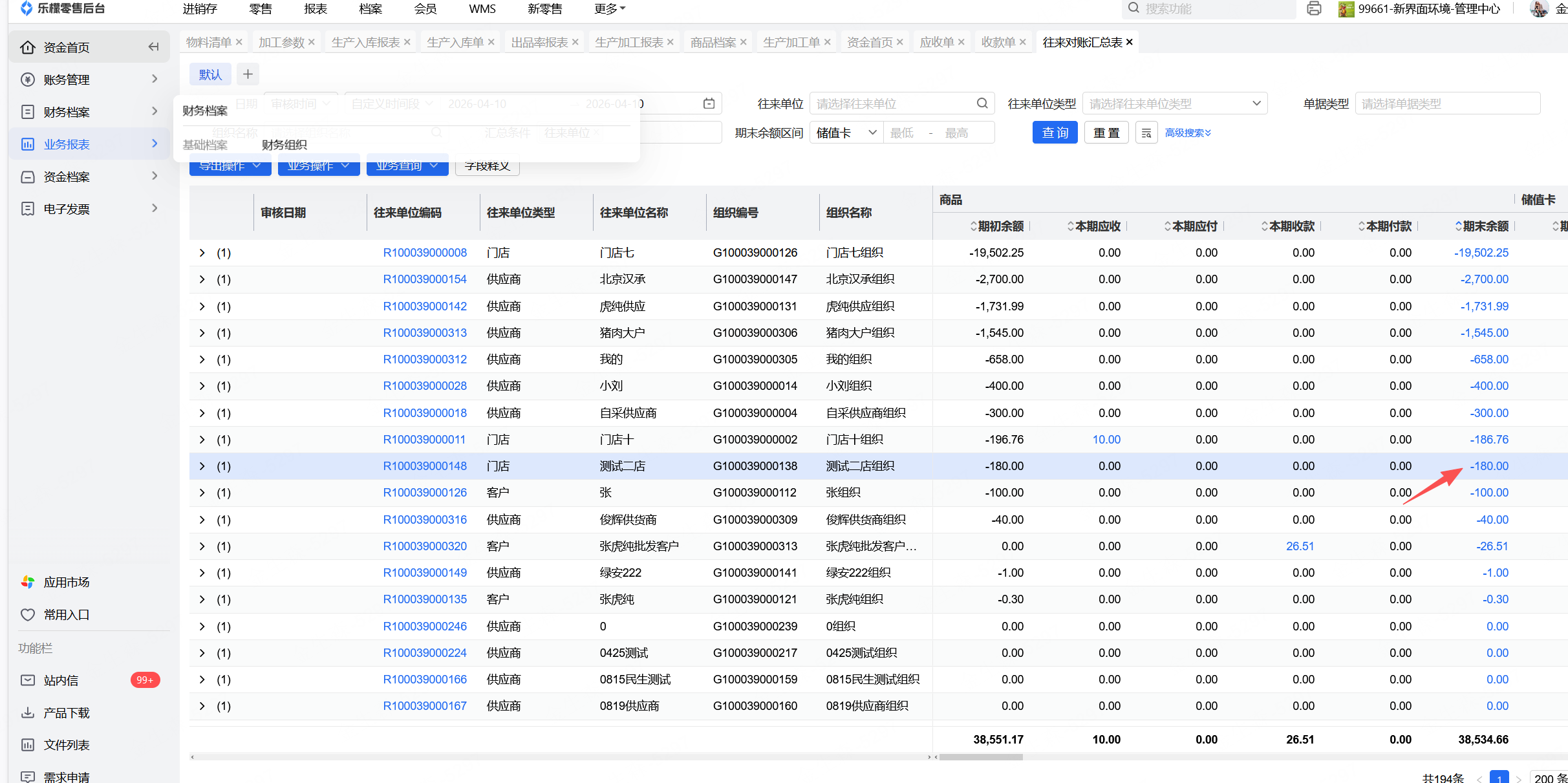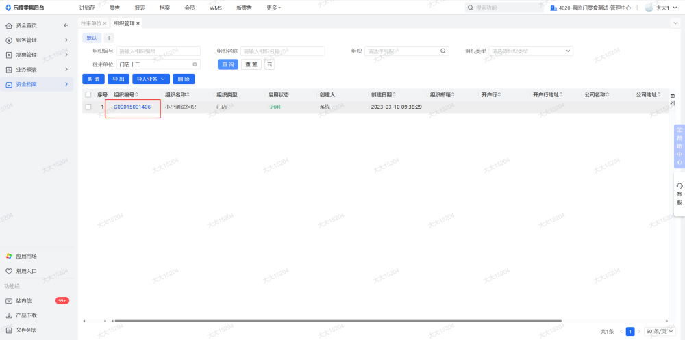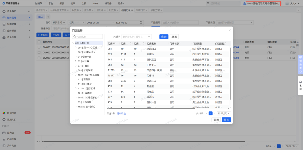 4、如果有别的结算组织,也要检查在别的结算组织下,这家门店的余额是否都已清零,制单的单据已全部删除,单据已全部核销