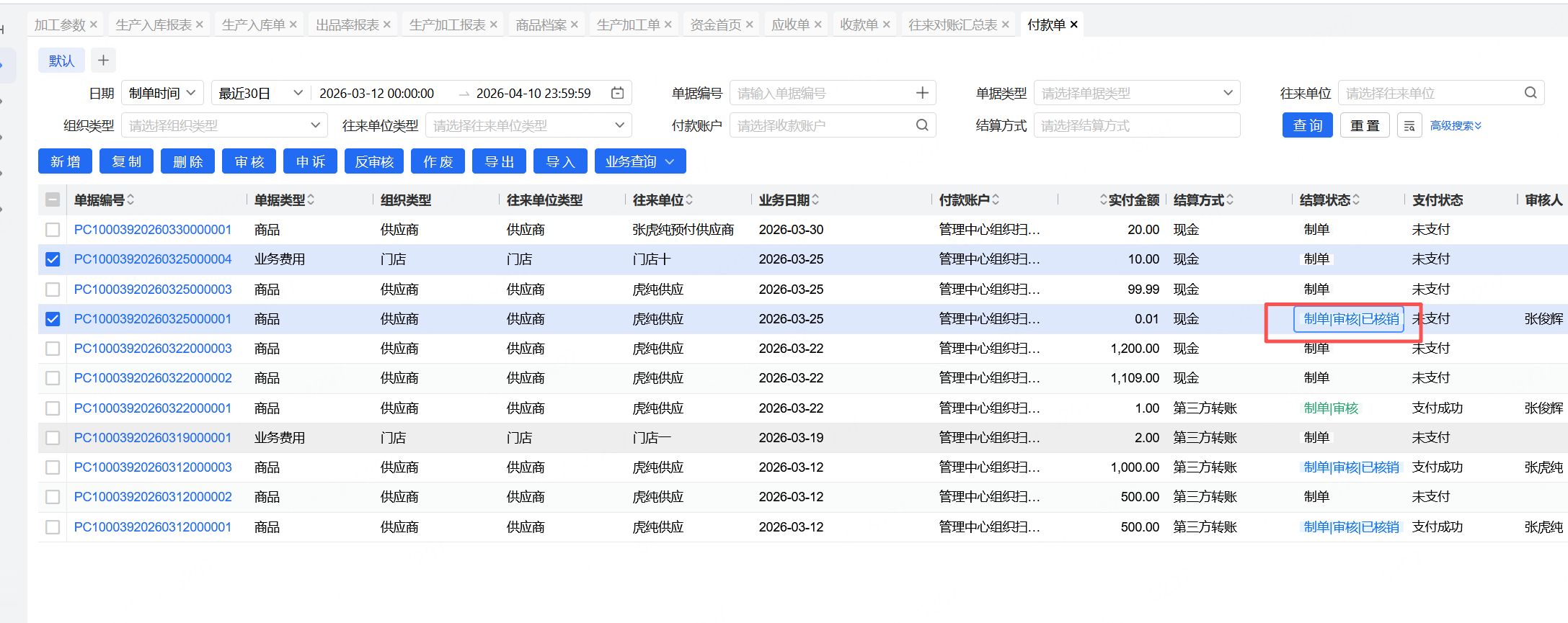 3、应收单,应付单,收款单,付款单这四种已审核的都要改成制单 | 审核 | 已核销 状态