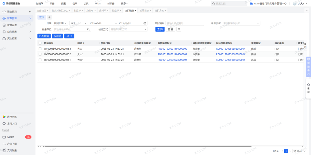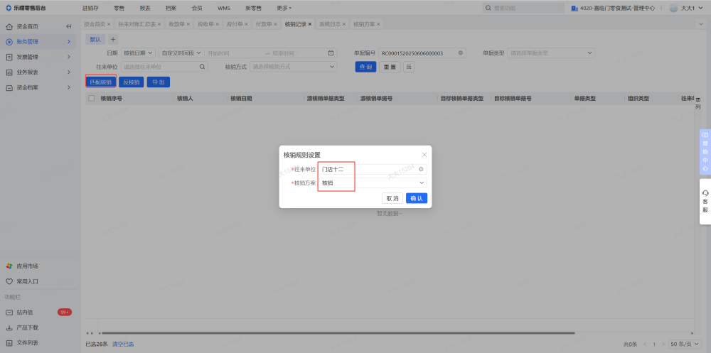 确定后,系统就会把门店历史未核销的单据全部自动核销掉