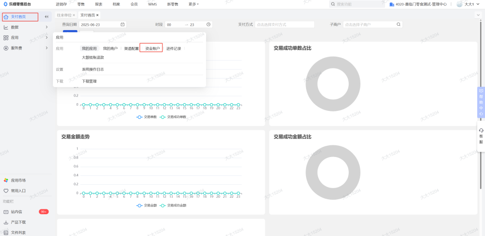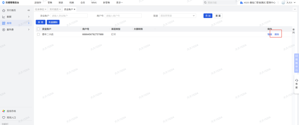 6、资金账户如果有余额要全部提现出去,然后在乐檬支付-应用-资金账户删除对应的资金账户