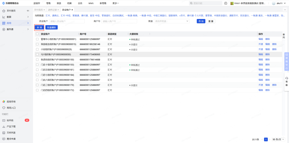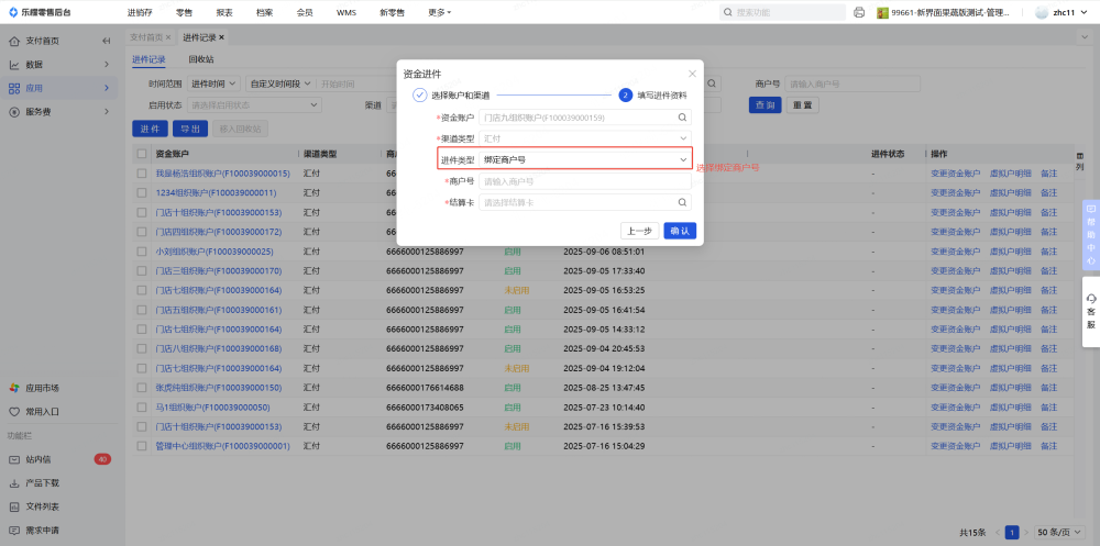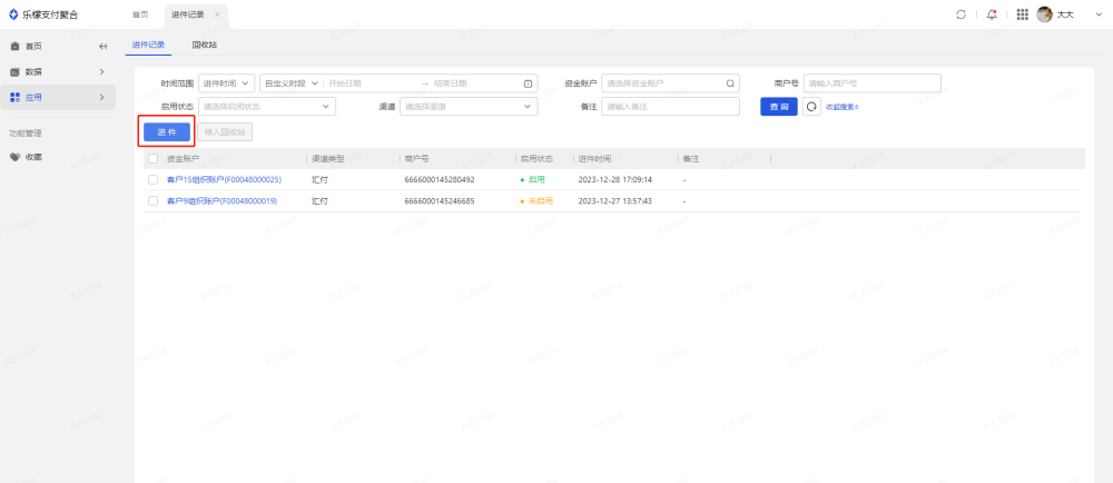 2、支付-应用-进件记录,做资金账户进件