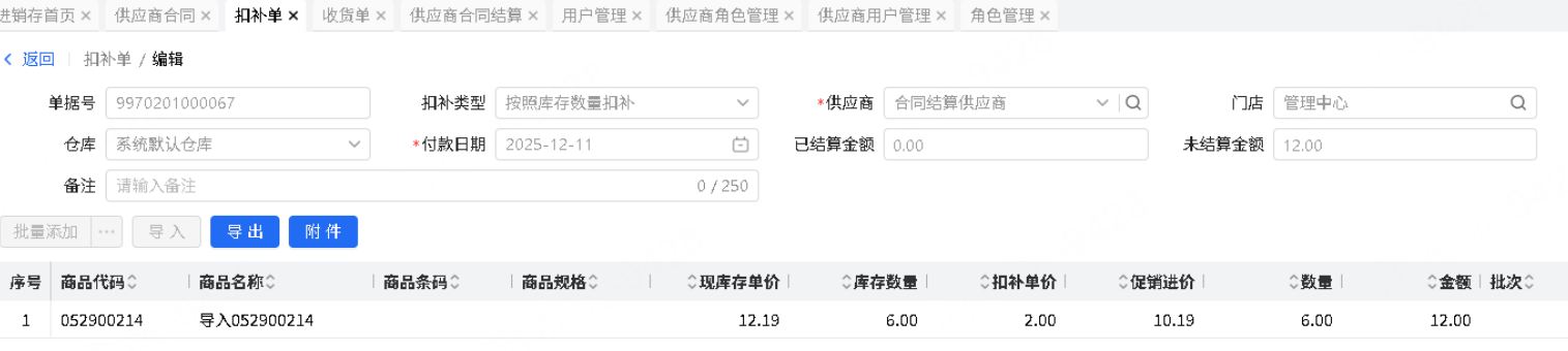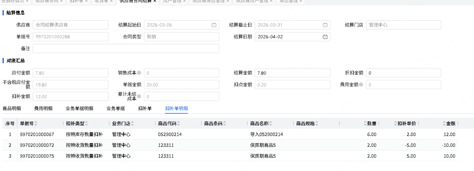 乐檬进销存 - 供应商结算、供应商合同结算增加扣补单明细