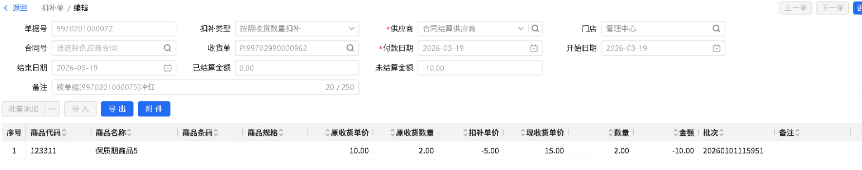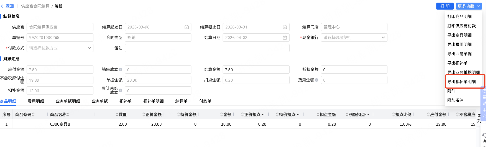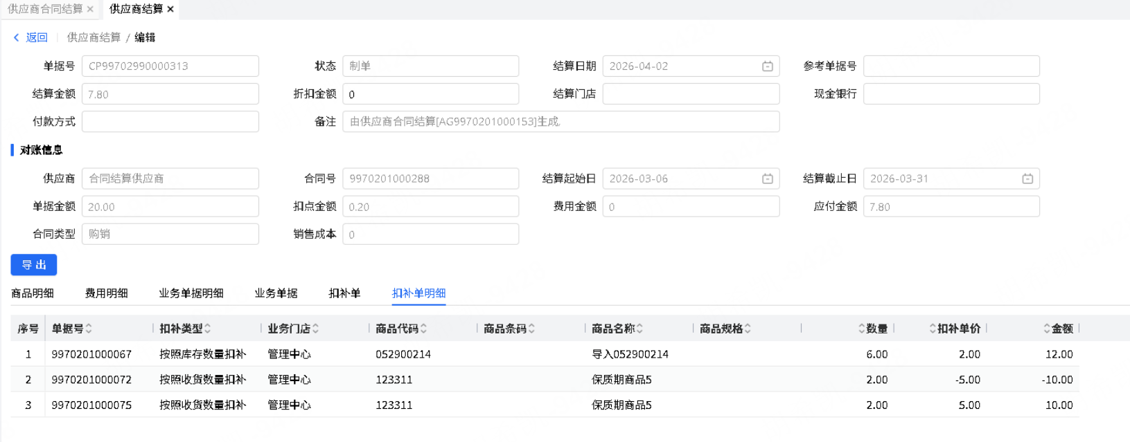 财务在给供应商做结算时会结算扣补单的数据,目前只能看到扣补单的清单,只要金额信息,无法看到本次结算的扣补单包含哪些商品明细,来提供给供应商核对