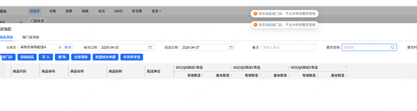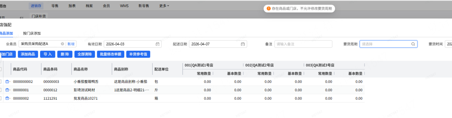 原来没选要货周期,然后存在商品或门店后,又去选择要货周期也按上述提示