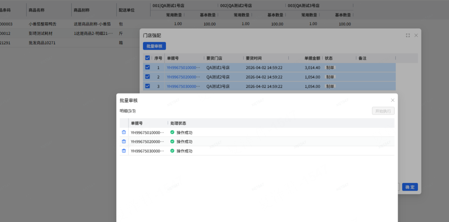 门店强配单弹窗界面