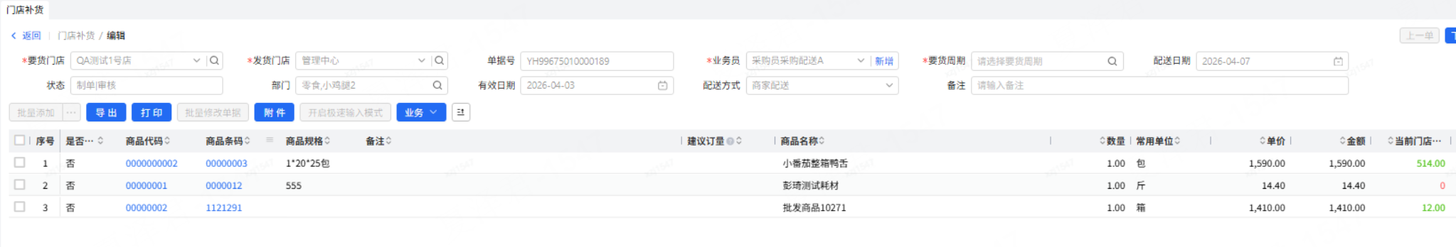 选择完要货周期后,生成的要货单,发货门店需要按要货周期发货门店赋值