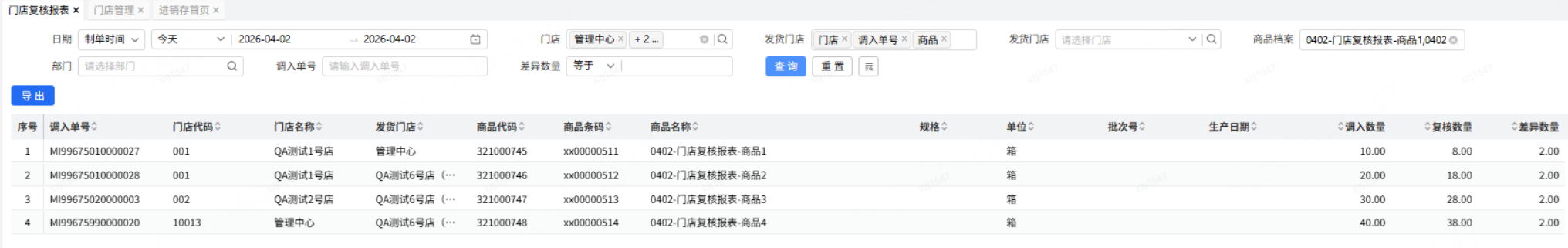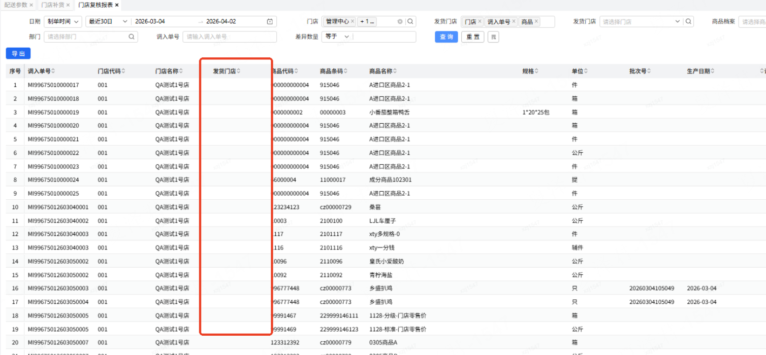 正常门店去查询复核数据的时候是要区分是总部来货的商品,还是门店间调拨的商品,对加盟商(多家门店)来说,可能只需要核实总部来货的数据,自己门店间调拨的数据是不需要核实的