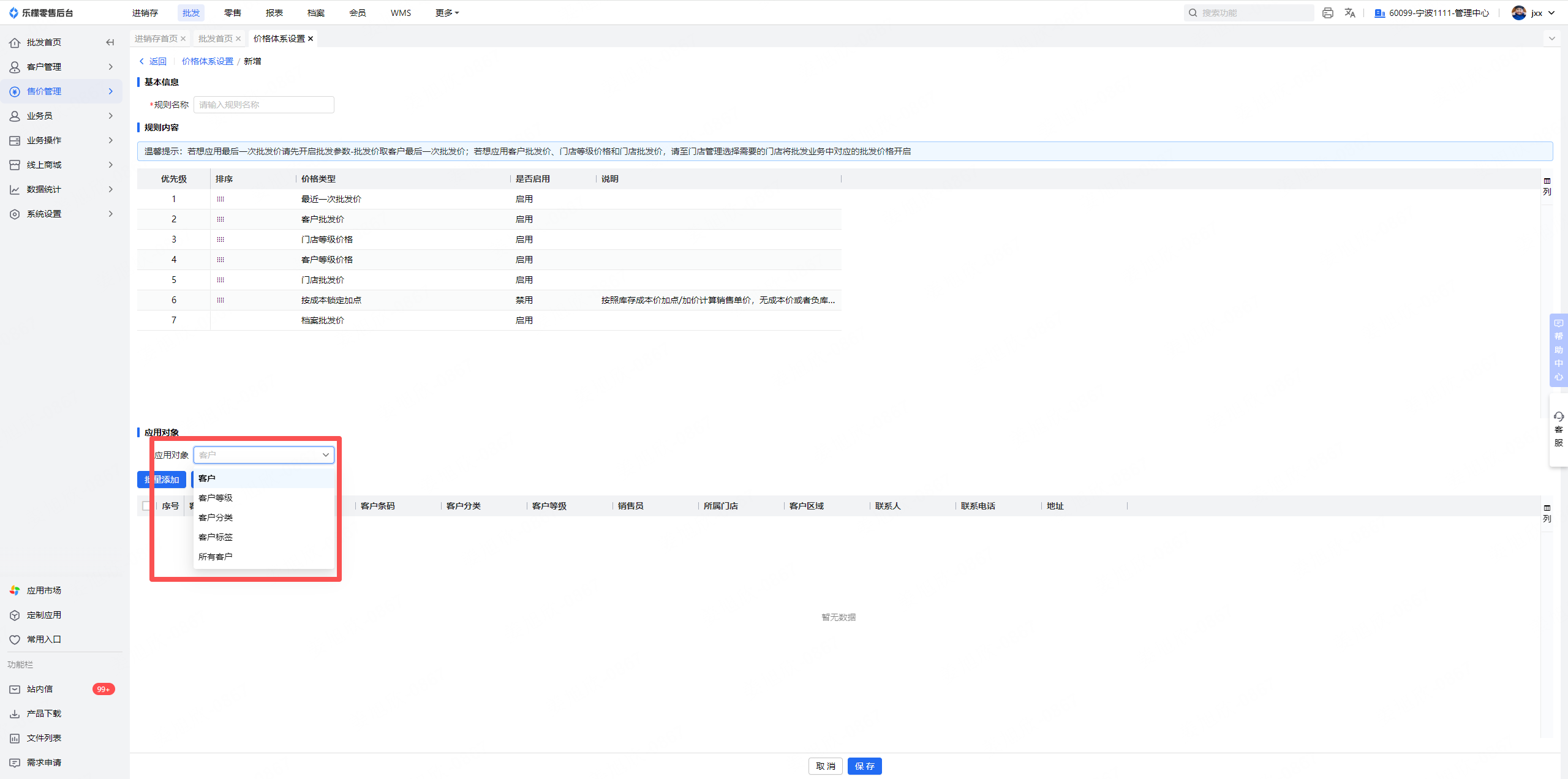 乐檬商贸 - 价格取值体系支持设置全部客户