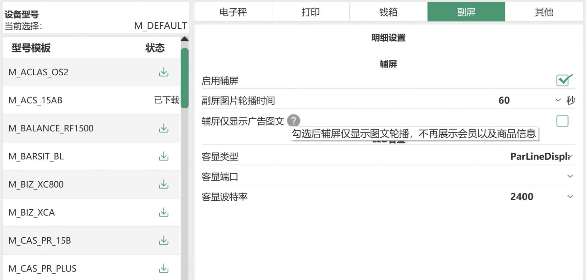 参数注释:勾选后辅屏仅显示图文轮播,不再展示会员以及商品信息